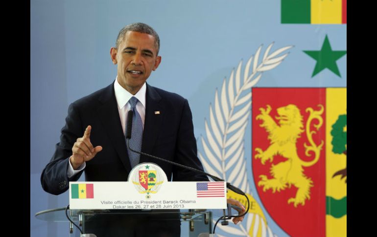 Internacional | El presidente declara que EU usará todos los medios para capturarle Obama no enviará aviones para interceptar a Snowden El presidente declara que EU usará todos los medios para capturarle Por: EFE 27 de junio de 2013 - 07:23 hs Barack Obama habla durante una conferencia en Senegal. AP / DAKAR, SENEGAL (27/JUN/2013).- El presidente de EU, Barack Obama, afirmó hoy en Dakar que no enviará aviones estadounidenses para interceptar a Edward Snowden, el extécnico de la CIA acusado de espionaje y que permanece en la zona de tránsito del aeropuerto de Moscú. En una rueda de prensa conjunta con su homólogo senegalés, Macky Sall, Obama señaló que no ha hablado de Snowden con el presidente ruso, Vladimir Putin, y que EU usará todos los canales para detenerle. Temas Europa Estados Unidos Rusia Barack Obama Espionaje Senegal Lee También La paz siempre es una buena noticia Revelan llamada al 911 con que se reportó la muerte de Diane Keaton SMN advierte lluvias y bajas temperaturas en México esta semana Organismo internacional prevé tensión comercial a nivel global en 2026 Recibe las últimas noticias en tu e-mail Todo lo que necesitas saber para comenzar tu día Registrarse implica aceptar los Términos y Condiciones
