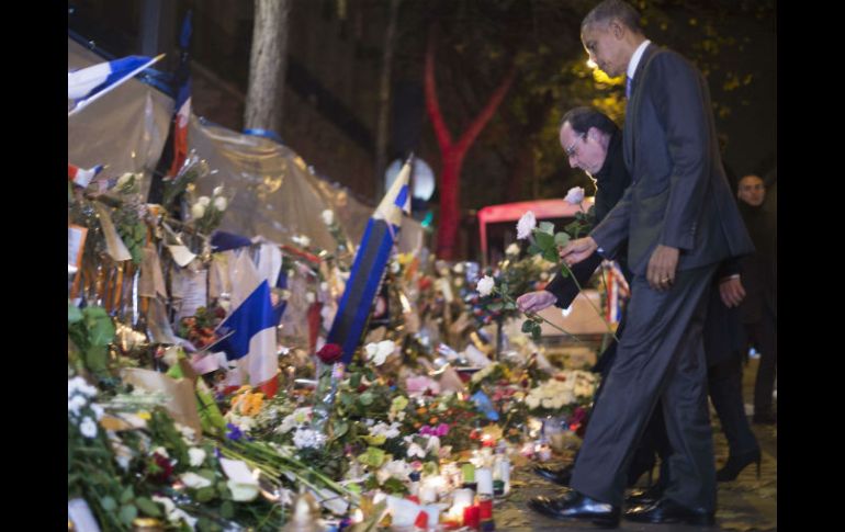 Internacional | Acude al Bataclan, la famosa sala de conciertos donde se realizó uno de los ataques Obama rinde tributo a víctimas de ataques en París El presidente de EU acude al Bataclan, la famosa sala de conciertos donde se realizó uno de los ataques Por: AP 29 de noviembre de 2015 - 19:11 hs PARÍS, FRANCIA (29/NOV/2015).- El presidente Barack Obama rindió tributo a las víctimas de los ataques terroristas en París el pasado 13 de noviembre. Pasada la media noche en París, el vehículo del mandatario estadounidense se dirigió directamente del Aeropuerto Orly a la famosa sala de conciertos francesa Bataclan, donde se realizó uno de los ataques terroristas. El presidente de Francia, Francois Hollande, y la alcaldesa de París, Anne Hidalgo, acompañaron a Obama. Cada uno colocó una flor en el improvisado altar y Obama bajó la cabeza y observó un momento de silencio. Unas 130 personas fallecieron en el ataque más letal en territorio francés en más de medio siglo. El grupo Estado Islámico se atribuyó responsabilidad. Obama se encuentra en París para los dos primeros días de la cumbre internacional en contra del cambio climático. Temas Europa Paris Francia Barack Obama François Hollande Recibe las últimas noticias en tu e-mail Todo lo que necesitas saber para comenzar tu día Registrarse implica aceptar los Términos y Condiciones