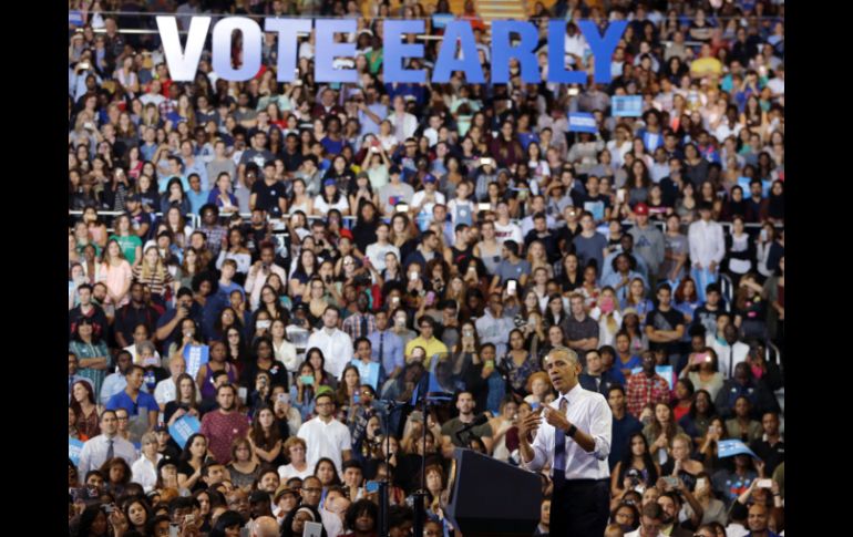 MIAMI, ESTADOS UNIDOS (03/NOV/2016).- A cinco días de las elecciones generales, el presidente estadunidense Barack Obama realizó un acto de campaña a favor de Hillary Clinton en Miami para urgir a los electores a salir a votar por adelantado en el "campo de batalla" de Florida. La campaña demócrata espera que Obama pueda alentar a más votantes afroamericanos a ir a las urnas, pues les preocupa que Clinton no está atrayendo ese voto en las cantidades que Obama lo hizo hace cuatro años en este y otros estados como Carolina del Norte, otro "campo de batalla". El mitin de Obama se realizó esta mañana en la Universidad Internacional de Florida (FIU) con público joven diverso, en la segunda visita del mandatario a Florida en una semana, luego de hacer campaña en Orlando el domingo pasado. El mandatario estaría más tarde en Jacksonville. Esta mañana, Obama dijo a los votantes en Florida que el candidato republicano Donald Trump es "excepcionalmente incompetente" para ocupar la Presidencia de Estados Unidos y "temperamentalmente incapaz" para el cargo. Señaló que alguien que no muestra respeto por sus trabajadores, que no muestra respeto por las mujeres y discrimina antes de ser presidente, hará exactamente los mismo "cuando sea presidente". "La Oficina Oval de la Casa Blanca magnifica el carácter, no lo cambia", señaló el mandatario, quien al hablar de Trump escuchó los "boos" del público y les dijo en un juego de palabras "él no puede escuchar sus boos, pero puede escuchar sus votos". Mientras que sobre Clinton, dijo que ella "ha dedicado su vida" a hacer mejor la vida de los demás, algo "que no siempre ha sido "apreciado totalmente" y que a él lo hizo "un mejor presidente" como secretaria de Estado. En su viaje a Miami, donde pernoctó el miércoles, dijo que notó que los precios de gasolina se habían mantenido debajo de los dos dólares, mientras que los republicanos habían vaticinado cuando logró su primer mandato hace ocho años que subirían a seis dólares. "A veces es útil revisar el video, ver lo que dijeron antes y resulta que lo que dijeron estaba mal, eso significa que lo que están diciendo ahora también está mal", dijo el mandatario. Impulsó su mensaje diciendo que Trump y otros republicanos sólo han prometido derribar sus logros, y no tienen ninguna propuesta propia. "Vamos, no puedes estar en contra de algo. ¡Tienes que proponer algo!", dijo el mandatario demócrata.