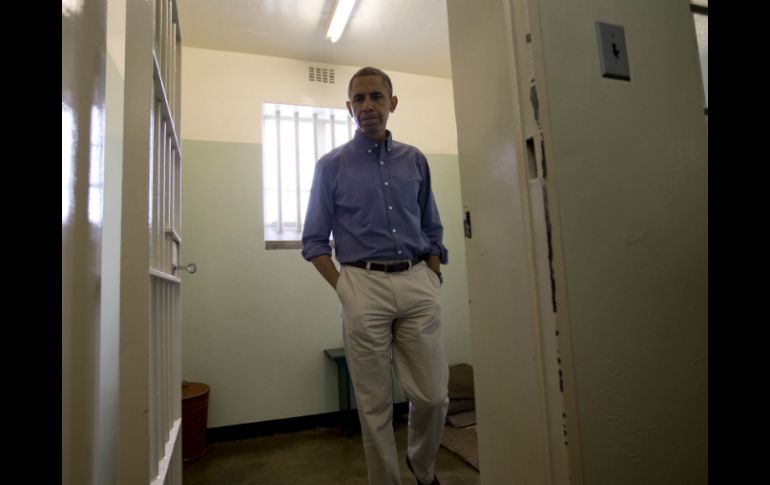 Internacional | El presidente dijo estar 'conmovido' tras su estadía en Robben Island Obama visita prisión donde estuvo encarcelado Mandela Barack Obama dijo sentirse 'conmovido' tras su visita a Robben Island, la prisión en la que Nelson Mandela estuvo encarcelado 18 años Por: EFE 30 de junio de 2013 - 10:42 hs JOHANNESBURGO, SUDÁFRICA (30/JUN/2013).- El presidente estadounidense, Barack Obama, se mostró hoy "muy conmovido" tras visitar la antigua prisión de la isla de Robben, donde el icono de la lucha contra el "apartheid" (segregación racial) Nelson Mandela estuvo encarcelado 18 años, según la emisora local "Eyewitness News". "En nombre de nuestra familia, estamos muy conmovidos por haber estado donde hombres de tanto coraje se enfrentaron a la injusticia y se negaron a rendirse", escribió Obama en el libro de visitas de la isla, situada frente a las costas de Ciudad del Cabo, en el suroeste de Sudáfrica. Obama visitó Robben Island con su mujer, Michelle, y sus hijas, Malia y Sasha, en el segundo y último día de su visita a Sudáfrica. Los Obama, que tuvieron de guía a Ahmed Kathrada, antiguo prisionero de la cárcel, homenajearon de esta manera al expresidente sudafricano Nelson Mandela, que a sus 94 años pasa hoy su octavo día en estado crítico en un hospital de Pretoria. Tras rendir tributo a Mandela, Obama visitó en Ciudad del Cabo un centro comunitario dedicado a la lucha contra el sida, acompañado por el arzobispo emérito de la ciudad y premio Nobel de la Paz 1984 Desmond Tutu. Obama cerrará sus actos oficiales en Sudáfrica con un discurso en la Universidad de Ciudad del Cabo. Durante su estancia ayer en Pretoria y Johannesburgo, en el noreste del país, el primer presidente negro de EEUU calificó al primer presidente negro de Sudáfrica de "inspiración para el mundo", tras lo que se reunió con miembros de su familia en privado en la sede de la Fundación Nelson Mandela. En otro de los actos de ayer, Obama puso a Mandela de ejemplo para los estudiantes ante los que habló en el antiguo gueto negro de Soweto (Johannesburgo). "El futuro del continente está en vuestras manos", proclamó el líder estadounidense ante el joven auditorio, en un acto lleno de simbolismo. Obama concluirá el próximo martes en Tanzania una gira africana que comenzó el miércoles pasado en Senegal y continuó este fin de semana en Sudáfrica. Temas África Barack Obama Nelson Mandela Sudáfrica Lee También Elefante se hace viral tras atacar a turistas en un safari | VIDEO Prometen reformar el G20: “ni diversidad, ni equidad, ni inclusión” Alerta en África por nueva cepa de viruela de mono Crimen organizado tiene presencia en África, según el Pentágono de EU Recibe las últimas noticias en tu e-mail Todo lo que necesitas saber para comenzar tu día Registrarse implica aceptar los Términos y Condiciones