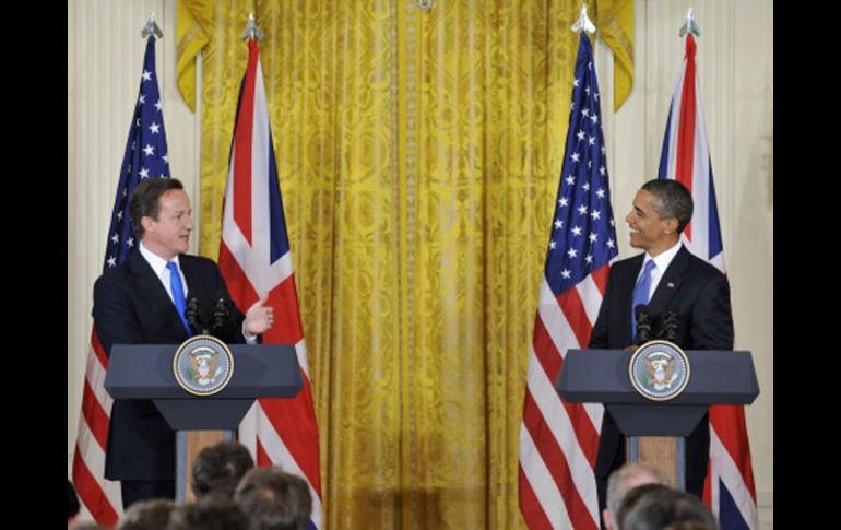 Internacional | Cameron asegura entender la molestia derivada del derrame Obama y Cameron alivian tensiones por la marea negra El presidente estadounidense aseguró que Gran Bretaña es el socio y aliado más cercano a su país Por: EL INFORMADOR 21 de julio de 2010 - 01:47 hs Barack Obama y David Cameron, durante la conferencia ofrecida en la Casa Blanca. NTX / WASHINGTON, ESTADOS UNIDOS (21/JUL/2010).- El presidente estadounidense, Barack Obama, y el primer ministro británico, David Cameron, buscaron aliviar las tensiones sobre la British Petroleum (BP) por el derrame de petróleo en el Golfo de México. “Estados Unidos no tiene un aliado más cercano y un socio más fuerte que Gran Bretaña”, dijo Obama tras una reunión con Cameron en la Casa Blanca, en la que bromearon y se llamaron por sus nombres. Sobre el derrame, Cameron señaló que entiende el “enojo” de los estadunidenses por la catástrofe en el turismo, el ambiente y la pesca en el Golfo de México. Temas Norte América Estados Unidos Gran Bretaña Derrame petrolero en el Golfo Lee También Así se prevé que avance el desarrollo de "Sonia" en México Revelan el número de personas no localizadas tras lluvias "atípicas" Visa laser: ¿Qué vigencia tiene y cuáles son sus limitaciones? ¿Qué viene en el clima para México en los próximos días? Recibe las últimas noticias en tu e-mail Todo lo que necesitas saber para comenzar tu día Registrarse implica aceptar los Términos y Condiciones