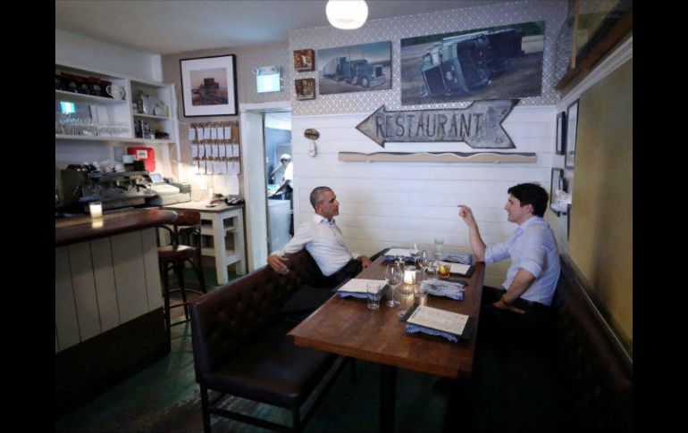 MONTREAL, CANADÁ (07/JUN/2017).- El expresidente de Estados Unidos, Barack Obama, y el primer ministro de Canadá, Justin Trudeau, cenaron hoy en un restaurante de Montreal, donde hablaron de cómo motivar a los jóvenes a trabajar en sus comunidades.El lunes, Obama llegó a esta ciudad y ante la Cámara de Comercio de Montreal criticó al gobierno estadunidense de Donald Trump por abandonar el Acuerdo de París sobre Cambio Climático."Obviamente estoy en desacuerdo con la decisión de la actual administración estadunidense de salirse del acuerdo", dijo el expresidente ante empresarios montraelenses.Aplaudió a los Estados y a las corporaciones por seguir comprometidos con el Acuerdo de París, "a pesar de la temporal ausencia del liderazgo estadunidense".Al término de su participación, se reunió con el primer ministro Trudeau. Ambos cenaron en el restaurante Liverpool House, donde dialogaron sobre diferentes temas.Trudeau compartió en sus redes sociales una foto en la que se observan sin corbata ni saco, dialogando informalmente."¿Cómo podemos hacer que los jóvenes líderes tomen acciones en sus comunidades? Gracias Barack Obama por tu visita y tus ideas esta noche en mi ciudad", escribió el líder liberal.Esta fue la primera visita de Obama a Canadá desde que dejó la Casa Blanca en enero pasado. Como toda una celebridad, el exmandatario estadunidense fue aplaudido por los canadienses al salir del restaurante para abordar su camioneta.La foto en Twitter causó reacciones de simpatía entre los canadienses, quienes escribieron: "muchos americanos y canadienses lo extrañamos", "líder del mundo libre". También hubo comentarios para Trudeau: "Justin sálvanos".