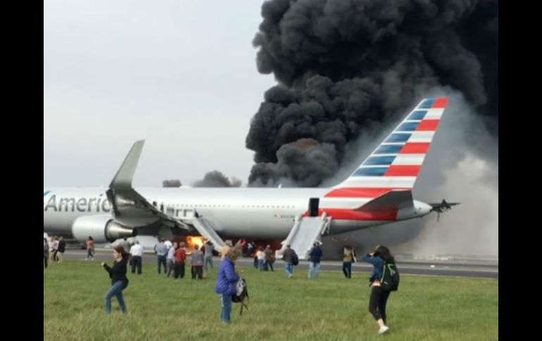 CHICAGO, ESTADOS UNIDOS (28/OCT/2016).- Siete pasajeros y un asistente de vuelo sufrieron heridas menores luego de que un avión de American Airlines se incendió el viernes en el Aeropuerto Internacional O'Hare de Chicago, lo que provocó que los pasajeros fueran evacuados sobre la pista.La portavoz de American Airlines, Leslie Scott, dijo que los heridos fueron llevados a un hospital para ser evaluados.Scott dijo que el vuelo 383, un Boeing 767 con destino a Miami, fue cancelado debido a un problema mecánico en un motor. Los 161 pasajeros y nueve tripulantes fueron evacuados y trasladados en autobús a la terminal del aeropuerto. Scott dijo que los pasajeros serán llevados en otro vuelo a Miami por la noche.El vocero de la Administración Federal de Aviación de Estados Unidos (FAA por sus siglas en inglés), Tony Molinaro, dijo previamente que durante la fase de despegue del vuelo 383, un neumático estalló y causó daños a un motor. Molinaro agregó que el pilotó canceló el despegue y todas las personas a bordo tuvieron que evacuar.Las imágenes por televisión mostraron una nube de humo negro proveniente del Boeing 767, que parecía estar dañado en la parte posterior. Los toboganes de evacuación del avión fueron activados.La Junta Nacional de Seguridad en el Transporte realizará una investigación del incidente, dijo su portavoz Keith Holloway.