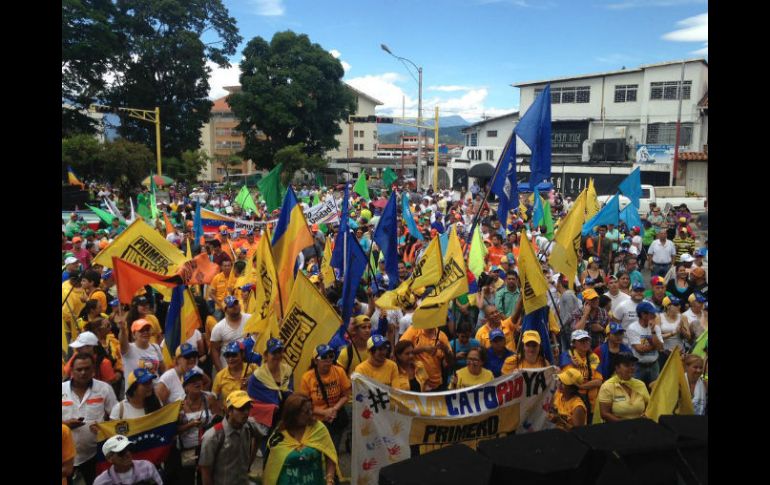 CARACAS, VENEZUELA (16/SEP/2016).- Cientos de manifestantes acudieron este viernes al llamado de la oposición venezolana en lo que fue denominado como "La Cumbre del pueblo" en los estados del país para exigir al Poder Electoral que establezca la fecha del último paso previo a la convocatoria de un referendo revocatorio presidencial.Esta manifestación fue también llamada la "anticumbre" en el marco de la XVII reunión del Movimiento de países No Alineados (MNOAL) que se celebra en la isla venezolana de Margarita (Nueva Esparta, noreste) y a la que están convocados cancilleres y jefes de Estados de 120 países.El representante de la alianza opositora Mesa de la Unidad Democrática (MUD) ante el Consejo Nacional Electoral (CNE, Poder Electoral), Juan Carlos Caldera, sostuvo en declaraciones a periodistas que la manifestación también buscaba mostrarle a los asistentes de la MNOAL que en Venezuela se vive una crisis."Sepan que en Venezuela hay más de 14 millones de venezolanos que comen dos veces al día (...) allá donde están ustedes en Margarita el pueblo sufre las condiciones de los servicios públicos, el desabastecimiento, el alto costo de la vida", aseguró Caldera.El Consejo Nacional Electoral (CNE) decidió suspender las actividades este viernes en razón de estas protestas opositoras que, consideró, una amenaza para la seguridad de los trabajadores de esa institución.Por lo anterior, el diputado opositor Richard Blanco sostuvo que continuarán en jornadas de calle "les guste o no les guste (al CNE)" ya que, a su juicio, el ente ha retrasado la fecha que exigen los solicitantes del revocatorio."Si hoy la fecha que nos van a suministrar es una fecha que no permite que este año 2016 salgamos de la desgracia que significa tener un Gobierno que está haciendo pasar hambre al pueblo (...) bueno que cada quien asuma su responsabilidad", agregó.Varios de los manifestantes que acudieron a las concentraciones llevaban ollas para realizar el cacerolazo (golpear ollas), una forma de protestar que fue convocada por algunos diputados de la oposición.En Caracas los opositores salieron del este de la ciudad para encontrarse en el punto de concentración final ubicado en la avenida Libertador, pese a la existencia de un cordón policial en el sitio, según ha reportado en Twitter la MUD.El paso a cumplir por los opositores que pretenden revocar al jefe de Estado, Nicolás Maduro, consiste en la recogida de apoyos equivalente al 20% de los inscritos en el censo electoral, unos cuatro millones de votantes.Para esta tarea, que se concretará a fines de octubre de acuerdo con el CNE, la MUD exige que el ente disponga de al menos 19 mil 500 máquinas en seis mil 500 centros de votación en todo el país suramericano y durante tres días.
