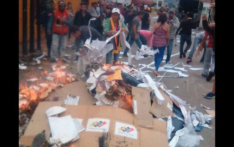 CARACAS, VENEZUELA (29/JUL/2017).- Un grupo de vecinos del municipio venezolano de Queniquea, en el oeste del país, incendió hoy papeletas, cajas y otros objetos de material electoral que debía utilizarse para la votación de la Asamblea Nacional Constituyente, contra la que continúan, a un día de los comicios, las protestas."Continúa la rebeldía en las calles de nuestro (estado) Táchira, en Queniquea tampoco se permitirá el fraude constituyente", escribió en su cuenta de Twitter la diputada opositora Gaby Arellano, que publicó además varias imágenes de lo ocurrido.En ellas se ven arder cajas de cartón con el logotipo del Consejo Nacional Electoral (CNE) destrozadas y papeletas esparcidas por el suelo ante la mirada de numerosas personas presentes.Un vídeo compartido en Twitter muestra a varias personas sacando de un edificio maletas y cajas que contendrían material electoral y que lanzaron contra el suelo ante la pasividad de los efectivos de la Guardia Nacional (GNB, policía militarizada) que allí se encontraban."En Táriba, municipio Cárdenas, utilizarán el Coliseo para hacer un centro electoral ante los inhabilitados por los manifestantes", dijo también Arellano, sin dar más información sobre lo ocurrido en esta otra localidad tachirense.Otros usuarios de Twitter han escrito sobre incidentes similares en otros puntos del estado.Decenas de personas entraron ayer a un colegio electoral en la localidad de Tovar, en el occidental estado venezolano de Mérida -vecino a Táchira-, y sustrajeron y quemaron las máquinas de votación y el material dispuesto para los comicios de mañana.Según testigos, quienes protestaban abrieron el portón de la escuela Ananías Avendaño, entraron y sacaron todas las cajas para después quemarlas.Convocada sin un referendo previo por el presidente Nicolás Maduro, la Constituyente que se ocupará de cambiar la Carta Magna y que se vota mañana es considerada un "fraude" por la oposición, que lleva semanas protestando contra un proceso que, a su juicio, abrirá las puertas a "consolidar una dictadura" en Venezuela.La alianza opositora Mesa de la Unidad Democrática (MUD) ha llamado a seguir mostrando en las calles su rechazo a este proceso que ha sido criticado también por parte de la comunidad internacional y que permitirá a la Constituyente que se instaure refundar el Estado con todos los poderes.Venezuela vive desde abril una oleada de protestas, algunas de las cuales se han tornado violentas y se han saldado con 109 muertos y más de mil detenidos.