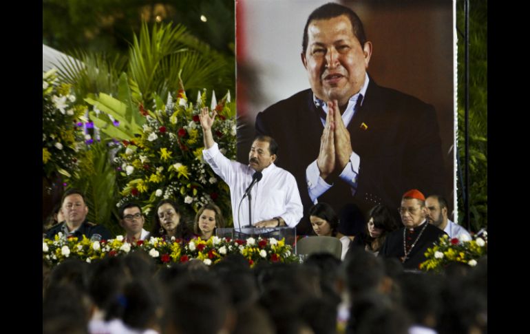 Internacional | El presidente de Nicaragua promete continuar con la filosofía de la ALBA Ortega rinde homenaje a Chávez El presidente de Nicaragua promete continuar con la filosofía de la ALBA Por: EFE 5 de marzo de 2013 - 21:19 hs MANAGUA, NICARAGUA (05/MAR/2013).- El presidente de Nicaragua, Daniel Ortega, rindió hoy un homenaje póstumo a su aliado y homólogo de Venezuela, Hugo Chávez, y, en su memoria, prometió continuar "luchando" por la unidad latinoamericana y caribeña, y la filosofía de la Alianza Bolivariana para los Pueblos de América (ALBA). "Le decimos al hermano pueblo venezolano que estamos entregados de lleno con la fuerza de nuestro espíritu, de nuestra acción, a seguir librando esta batalla, darle continuidad a los sueños del (Libertador Simón) Bolívar (...), a los sueños de Hugo Rafael Chávez Frías", declaró en un discurso el mandatario nicaragüense, desde la Plaza de la Revolución, en Managua. Ante una audiencia integrada por diplomáticos de los países miembros del ALBA, trabajadores del Estado, mandos militares y policiales, Ortega aseguró que seguirá "luchando para no traicionar a Chávez, levantando esas banderas de la libertad, la justicia, la paz y la unidad latinoamericana y caribeña". El líder sandinista comentó que no fue casualidad que Chávez haya nacido en el mismo país que Bolívar, y se animó a "decirle a Bolívar, 200 años después, que aró en tierra fértil, en el corazón de nuestros pueblos". "Nicaragua ha sido tierra fértil todo el tiempo. No podía estar ausente en estos nuevos tiempos", añadió. Ortega también aseguró que su fallecido homólogo venezolano le tenía "cariño a los nicaragüenses" y ese sentimiento fue recíproco hasta el anuncio de su muerte. "Desde ese mismo momento, este libertador, Hugo Rafael Chávez Frías, estaba trascendiendo con mayor fuerza e iluminando con una luz mucho más intensa, como suelen hacerlo los héroes, los próceres, los libertadores", resaltó. Asimismo, le envió su solidaridad y condolencias a la familia del mandatario venezolano, en un acto transmitido por cadena obligada de radio y televisión. En un discurso inusualmente corto, y bajo una fotografía gigante de Chávez con las manos juntas en gesto de reverencia, Ortega cerró gritando "¡Que viva la revolución bolivariana!, !Qué viva el comandante Hugo Chávez!, ¡Sandino vive, Chávez vive, Chávez vive!". Temas América Latina Venezuela Hugo Chávez Nicaragua Daniel Ortega Lee También ¡No la tiene fácil! Kevin Álvarez busca aprovechar su oportunidad con la Selección Así se veía de niño Daniel Aguirre, el héroe de Chivas en su duelo contra Pumas Urge un “hasta aquí” Recibe las últimas noticias en tu e-mail Todo lo que necesitas saber para comenzar tu día Registrarse implica aceptar los Términos y Condiciones