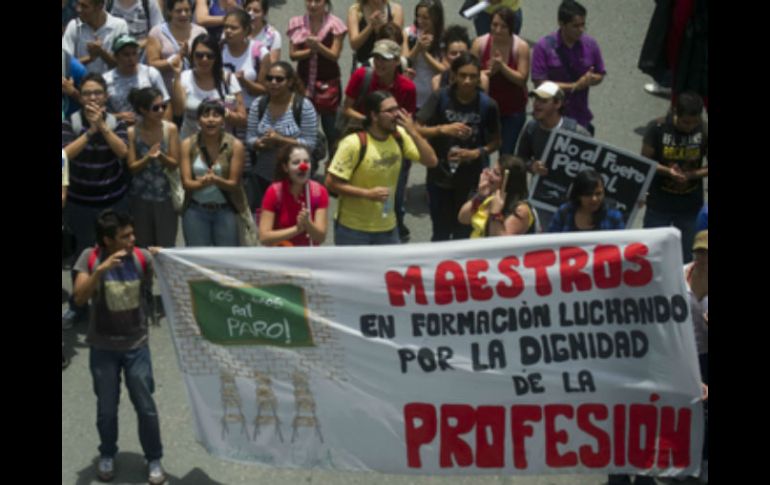 Internacional | Los maestros exigen alza de salarios y evaluación para los educadores Paro indefinido de 330 mil maestros en Colombia Los maestros de la Fecode exigen alza de salarios, mejora del sistema de salud y evaluación para los educadores Por: NTX 14 de mayo de 2014 - 10:51 hs Directivos de Fecode informan que el cese de actividades es una respuesta a la negligencia gubernamental. ARCHIVO / BOGOTÁ, COLOMBIA (14/MAY/2014).- La Federación Colombiana de Educadores ( Fecode) inició hoy con sus 330 mil afiliados un paro nacional indefinido para exigir alza de salarios, mejorar el sistema de salud y mecanismos de evaluación para los maestros. El paro nacional, que fue rechazado por el gobierno del presidente Juan Manuel Santos, afecta a más de ocho millones 700 mil estudiantes del sector público. La junta directiva de Fecode informó que el cese de actividades es una "respuesta a las dilaciones que el gobierno nacional viene dando al proceso de negociación" que desde el pasado 22 de abril adelanta el gremio. Indicaron que el Ministerio de Educación no ha dado respuesta a los tres puntos principales del pliego de peticiones, como es el alza de salario, mejorar el servicio de salud de los maestros, revisar los mecanismos de evaluación y calidad en la educación. El comité ejecutivo de Fecode orientó iniciar el paro nacional este miércoles con asambleas en todos los mil 100 municipios de Colombia. Temas América Latina Colombia Manifestaciones en el mundo Recibe las últimas noticias en tu e-mail Todo lo que necesitas saber para comenzar tu día Registrarse implica aceptar los Términos y Condiciones