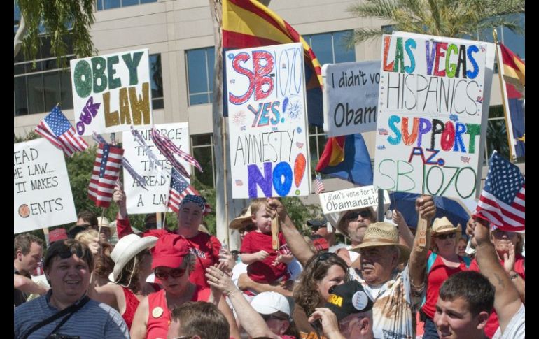 Internacional | Hubo manifestantes llegados de todo el territorio estadounidense Partidarios de la ley de inmigración se manifiestan en Phoenix La gobernadora Jan Brewer ha ordenado la creación de una junta encargada de diseñar un programa de entrenamiento para los policías Por: AP 5 de junio de 2010 - 17:45 hs Un grupo de personas se manifiestan en favor de la Ley SB1070. EFE / PHOENIX, ARIZONA (05/JUN/2010).- Cientos de personas que apoyan la nueva y severa ley de Arizona contra la inmigración ilegal se reunieron el sábado bajo un calor abrasador cerca del Capitolio estatal. El grupo Voice of the People USA, con sede en Pensilvania, organizó la manifestación. Hubo manifestantes llegados de todo el territorio estadounidense, dijo el presidente de la organización, Daniel Smeriglio. Cientos de motociclistas dieron comienzo a la protesta en el centro de Phoenix, al dar vueltas en caravana alrededor de la sede del Legislativo estatal. Varios simpatizantes agitaron banderas estadounidenses y algunos portaban carteles que decían: “¿Qué parte de ilegal no entienden ellos?'', en referencia a quienes apoyan a los inmigrantes. La manifestación de la tarde del sábado ocurre después de protestas contrarias entre sí, efectuadas la semana pasada, que atrajeron al área de Phoenix a miles de opositores y partidarios de la ley. El acontecimiento del sábado se realizaba en un parque en el centro de la ciudad, con temperaturas de hasta de 41.6 grados Celsius, (107 Fahrenheit). Smeriglio dijo que los organizadores tenían previsto distribuir agua y habían instado a los participantes a llevar sombrillas y cremas con bloqueador solar. El ex congresista republicano Tom Tancredo, de Colorado; el alguacil del condado de Maricopa, Joe Arpaio, y el senador estatal republicano Russell Pearce, de Mesa, estaban agendados para hablar en el evento. Pearce es autor de la ley que entrará en vigor el 29 de julio, a menos que lo impida una corte, como lo han solicitado varios recursos legales. La ley requiere que la policía, cuando realice detenciones por alguna infracción de tránsito o hable con la gente por alguna otra transgresión posible, les pregunte a esas personas sobre su estatus migratorio, si tiene una “sospecha razonable'' de que se encuentran en el país ilegalmente. Ninguna autoridad de Arizona ha explicado qué es una “sospecha razonable. La ley convierte también en un delito estatal el encontrarse ilegalmente en el país o el obstruir el tránsito para contratar jornaleros, independientemente del estatus migratorio de esos trabajadores. Los indocumentados que soliciten trabajo estarían cometiendo un delito. Los críticos de la medida dicen que ésta abre las puertas a discriminación racial por parte de la policía. Los simpatizantes de la medida consideran que ayudará a combatir la inmigración ilegal. La gobernadora Jan Brewer ha ordenado la creación de una junta encargada de diseñar un programa de entrenamiento para que los policías no incurran en casos de discriminación racial. Temas Norte América Arizona Ley antiinmigrantes Estados Unidos Recibe las últimas noticias en tu e-mail Todo lo que necesitas saber para comenzar tu día Registrarse implica aceptar los Términos y Condiciones