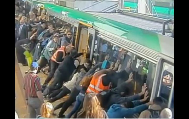 Internacional | Un pasajero alertó al personal ferroviario para evitar que el tren avanzara Pasajeros ladean vagón para liberar a un hombre en Australia Un pasajero alertó al personal ferroviario para evitar que el tren avanzara Por: AP 6 de agosto de 2014 - 16:50 hs SIDNEY, AUSTRALIA (06/AGO/2014).- La buena acción de una persona puede ser de mucha ayuda, pero cuando se multiplica puede ser una gran diferencia, esto pudo ser la gran enseñanza para un hombre que estuvo a punto de perder su pierna al caer accidentalmente en un espacio entre la plataforma y un tren en la estación Stirling de Perth en Australia. Decenas de personas ayudaron este miércoles a rescatar a un pasajero en Sidney, empujando juntas y ladeando un vagón de tren para liberar la pierna del hombre. Imágenes de video de circuito cerrado difundidas por la Autoridad de Transporte Público del estado de Australia Occidental muestran al hombre cayendo en el hueco al tratar de abordar el tren en una estación de la ciudad de Perth. Un pasajero alertó al personal ferroviario para evitar que el tren avanzara, reportó la prensa local. Cuando los trabajadores del tren vieron que el hombre no se podía mover, pidieron la ayuda de otros pasajeros. Al pasar los minutos, la pierna comenzó a hincharse y con esto se complicaba la situación. Las imágenes muestran a decenas de personas que acudieron a empujar el vagón para ladearlo y liberar al hombre, que había caído hasta la altura del muslo en el hueco. Funcionando a la perfección el plan, aquel hombre pudo librarse de tan fatal situación gracias a la colaboración de todos aquellos que ayudaron a empujar el vagón. "Es reconfortante presenciar un incidente como este en el que todos ayudan", dijo el portavoz de la autoridad de transporte David Hynes. No se reveló la identidad del hombre liberado. El servicio del tren se restableció en ese mismo momento y el hombre recibió atención médica. Medios locales reportan que se encuentra bien y después del chequeo se retiró para seguir su camino. Con información de AP / Carolina Quintanilla Temas Australia Sidney Oceanía Curiosidades Recibe las últimas noticias en tu e-mail Todo lo que necesitas saber para comenzar tu día Registrarse implica aceptar los Términos y Condiciones