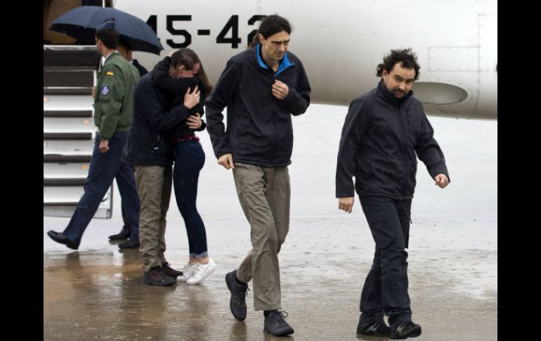Internacional | Los sujetos estaban secuestrados desde julio del año pasado Periodistas liberados en Siria llegan a España Varias personas se congregaron en la Base Aérea de Torrejón de Ardoz para darles la bienvenida Por: EFE 8 de mayo de 2016 - 04:27 hs Sastre (d), López (c) y Pampliega (i, abrazando a un familiar), a su llegada esta mañana a la Base Aérea de Torrejón de Ardoz. EFE / D. Crespo MADRID, ESPAÑA (08/MAY/2016).- Los periodistas españoles Antonio Pampliega, José Manuel López y Ángel Sastre, liberados en Siria, han llegado hoy a Madrid, informaron fuentes del Gobierno. Los periodistas, que permanecían secuestrados desde julio del año pasado y que fueron liberados ayer, procedían de Turquía y llegaron a la Base Aérea de Torrejón de Ardoz, en la capital española. Pampliega, López y Sastre fueron recibidos por sus familiares y por la vicepresidenta española del Gobierno en funciones, Soraya Sáenz de Santamaría, quien ayer ya pudo hablar con ellos cuando se encontraban en territorio turco. La última vez que se supo de ellos, antes de su liberación, fue en julio del año pasado cuando estaban en la ciudad de Alepo, bajo control del Frente Al Nusra, la filial siria de Al Qaeda. Los tres periodistas trabajaban en la zona como 'freelance' y habían entrado a Siria pocos días antes de ser secuestrados desde Turquía. El fotoperiodista José Manuel López acumula una larga trayectoria como corresponsal de guerra con un trabajo marcado por la denuncia de las injusticias y por el que ha recibido diversos premios. El periodista Ángel Sastre llevaba seis años recorriendo América Latina como 'freelance' para televisiones, periódicos y radios españolas y esa era la segunda vez que viajaba a Siria para retratar el dolor del conflicto. Pampliega es un periodista especializado en coberturas en zonas de conflicto y desde 2008 trabaja para el diario digital Neupic. Ha recibido el Premio de la Buena prensa a la mejor serie de reportajes por su trabajo en Alepo para el diario El Mundo, además de haber sido finalista en categoría de reportajes por "Los niños perdidos de Alepo", publicado en El País. Temas Europa Periodismo España Siria Agresiones a policías Recibe las últimas noticias en tu e-mail Todo lo que necesitas saber para comenzar tu día Registrarse implica aceptar los Términos y Condiciones