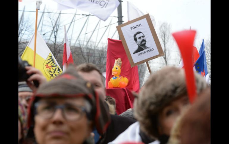 VARSOVIA, POLONIA (27/FEB/2016).- Miles de polacos al grito de "defenderemos la democracia" y "Lech Walesa" se manifestaron en Varsovia para protestar por las medidas del gobierno de derechas, que lleva tres meses en el poder y según ellos socava leyes constitucionales y las libertades.