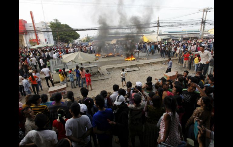Internacional | Informan que hay al menos tres heridos tras las detonaciones Policía abre fuego en Camboya contra manifestantes Informan que hay al menos tres heridos tras las detonaciones Por: AFP 2 de enero de 2014 - 21:23 hs La policía intenta disolver una manifestación de trabajadores textiles que piden un aumento de sueldos. EFE / PHNOM PENH, CAMBOYA (02/ENE/2014).- La policía militar camboyana abrió fuego este viernes contra una manifestación de trabajadores del sector textil en la capital Phnom Penh, y causó al menos tres heridos. Las policía primero disparó al aire, y luego contra los manifestantes, movilizados desde hace semanas para pedir que se duplique el sueldo mínimo. Ya en noviembre murió una mujer de un disparo, en una manifestación similar. El enfrentamiento entre los manifestantes y la policía se produjo después de que miles de obreros bloquearan una carretera situada delante de las fábricas. "Esta vez han usado armas y otras cosas para reprimir a los huelguistas", denunció Chan Soveth, del grupo defensor de los derechos humanos Adhoc, presente en el lugar de los hechos. Según él hubo diez heridos. "Los han golpeado en la cabeza", aseguró. El portavoz de la policía militar, Kheng Tito, indicó que las fuerzas del orden intervinieron porque nueve de sus hombres resultaron heridos el jueves y el viernes en unos incidentes con los manifestantes, que iban armados de hondas. "Estábamos inquietos por la seguridad, así que tuvimos que reprimir" la manifestación, declaró. "Si los dejamos que sigan haciendo huelga, esto va a ser la anarquía", apostilló el portavoz. Los obreros del sector textil camboyano, que abastece a las grandes marcas internacionales, reclaman un salario mínimo de 160 dólares mensuales en 2014. Actualmente, dicho sueldo es de 80 dólares. El gobierno prometió recientemente elevarlo a 95 dólares en abril de 2014, una concesión que los sindicatos estiman insuficiente. El sector textil da trabajo en este país a 650 mil personas, de las cuales 400 mil lo hacen para empresas exportadoras. Temas Asia Manifestaciones en el mundo Camboya Lee También Sociales: El Informador inicia una nueva etapa con la moderna imprenta "Doña Stella" Lo peor es que Claudia también tiene sus dudas Sobrevivientes de tortura inician huelga de hambre El bloque negro y la crisis del espacio público Recibe las últimas noticias en tu e-mail Todo lo que necesitas saber para comenzar tu día Registrarse implica aceptar los Términos y Condiciones