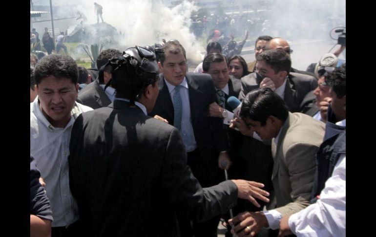 Internacional | Después de los enfrentamientos, el gobierno decretó estado de excepción Presidente de Ecuador denuncia intento de golpe de Estado Rafael Correa confrontó a los policías que tomaron un cuartel en la capital ecuatoriana; luego tuvo que ser auxiliado para salir de la trifulca Por: AFP 30 de septiembre de 2010 - 12:14 hs - Correa no cederá ante protestas de policíasQUITO, ECUADOR (30/SEP/2010).- El presidente de Ecuador, Rafael Correa, denunció este jueves que su gobierno es víctima de un "intento de golpe de Estado" por parte de sectores opositores y de las Fuerzas Armadas cercanas al ex mandatario Lucio Gutiérrez. "Es un intento de golpe de Estado de la oposición y son ciertos grupos enquistados en Fuerzas Armadas y Policía que siempre estuvieron, básicamente grupos de Sociedad Patriótica (el partido de Gutiérrez)", dijo Correa a la radio pública desde un hospital donde recibe atención médica. "Es clarísimo de dónde viene este intento desestabilizador", añadió el mandatario, recordando que en su discurso este jueves ante policías que tomaron el principal regimiento de Quito, los manifestantes aludieron en sus arengas a Gutiérrez, derrocado por una revuelta popular en abril de 2005. "Es impresionante, además con la cobardía, con máscaras, que golpeen, echen bombas lacrimógenas al presidente de la República", denunció el gobernante. En tanto, el canciller de Ecuador, Ricardo Patiño, llamó este jueves a simpatizantes del gobierno a "rescatar" al presidente Rafael Correa, quien desde un hospital de Quito denunció un intento de golpe de Estado y que policías en rebelión intentan ingresar a su habitación. Declaran estado de excepción El presidente de Ecuador, Rafael Correa, decretó el jueves por cinco días un estado de excepción en el país, para frenar una protesta policial que sumió en el caos a la nación. "Una vez que sectores de la policía han abandonado irresponsablemente su trabajo (...) para esto hemos declarado el estado de excepción", dijo el ministro de Seguridad Interna, Miguel Carvajal, a periodistas. (Reuters) Temas América Latina Ecuador Rafael Correa Lee También Chivas y América empatan en partido amistoso 'Chicharito' marca su primer gol al América en partido amistoso "Chucky" Lozano reconoce que jugaría en Chivas o en América ¿Quién ganará el partido entre las América y Chivas? Esto dice la IA Recibe las últimas noticias en tu e-mail Todo lo que necesitas saber para comenzar tu día Registrarse implica aceptar los Términos y Condiciones