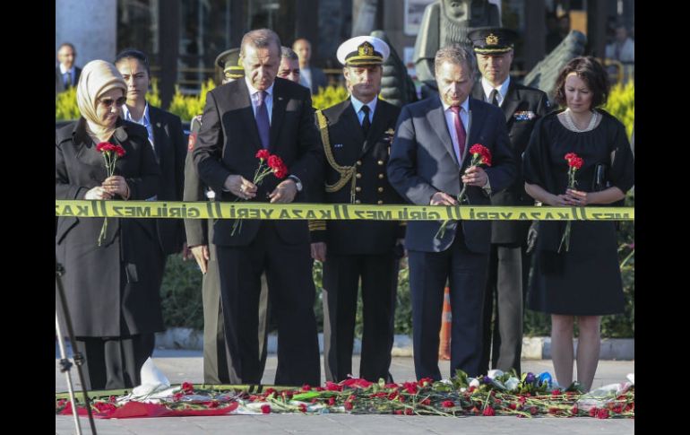Internacional | Dos atacantes se inmolan en una manifestación por la paz el sábado pasado Presidente turco rinde homenaje a las víctimas del atentado en Ankara Recep Tayyip Erdogan admite que hubo deficiencias de seguridad y ordena una investigación de alto nivel Por: NTX 14 de octubre de 2015 - 08:20 hs ANKARA, TURQUÍA (14/OCT/2015).- El presidente de Turquía, Recep Tayyip Erdogan, rindió hoy un homenaje a las víctimas del atentado del sábado pasado en el sitio donde se registró el doble atentado suicida cerca de una estación de tren, en el centro de Ankara. Junto con su colega finlandés, Sauli Niinistö, Erdogan depositó una ofrenda floral frente a la estación de tren de la ciudad, donde dos atacantes suicidas se inmolaron ante una multitud que asistía a una manifestación por la paz, con un saldo de 97 personas muertas. Hasta el momento ningún grupo se ha atribuido la responsabilidad del ataque. El gobierno de Ankara asegura que el grupo Estado Islámico (EI) está detrás del atentado que ocurrió a tres semanas de las elecciones legislativas anticipadas del 1 de noviembre, con una polarización cada vez mayor en el país. Los comicios tendrán lugar tres meses después de reanudarse el conflicto armado entre las fuerzas turcas y los rebeldes kurdos, contra lo cual precisamente iban a manifestarse las víctimas del atentado de Ankara. Erdogan admitió que hubo deficiencias de seguridad, y ha ordenado una investigación de alto nivel tras los atentados, mientras que el Ministerio de Interior de Turquía anunció la destitución de los jefes de la Policía y de los servicios de Inteligencia y Seguridad tras el peor atentado en la historia del país, reportó el diario Hurriyet Daily News. El atentado en Ankara, que también dejó más de 240 heridos, tiene similitudes con el ataque del 20 de julio en la ciudad de Suruc, en la frontera con Siria, en el que murieron 34 personas. Temas Medio Oriente Turquía Atentados Manifestaciones en el mundo Homenaje Lee También Marchas HOY CDMX: afectaciones viales, de este 20 de octubre Van más de mil personas multadas por tirar basura Refuerzan plan para ahorrar energía con paneles solares Jugadores de LaLiga se manifiestan contra el partido en Miami Recibe las últimas noticias en tu e-mail Todo lo que necesitas saber para comenzar tu día Registrarse implica aceptar los Términos y Condiciones