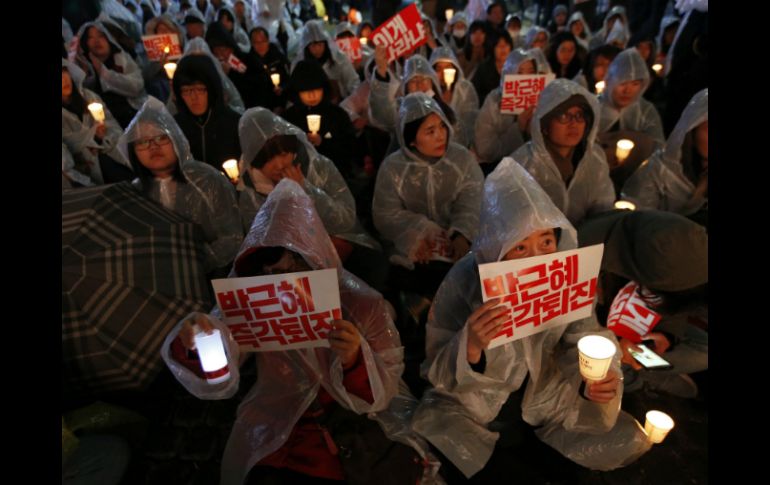 SEÚL, COREA DEL SUR (19/NOV/2016).- Decenas de miles de personas se manifestaron este sábado en Seúl, por cuarta semana consecutiva, para reclamar la dimisión de la presidenta surcoreana, Park Geun-hye, salpicada por un escándalo de corrupción.Estas manifestaciones, las más importantes en el país desde los años 1980, reunieron la semana pasada a un millón de personas en todo el territorio, según los organizadores. La policía habló de cifras 10 veces inferiores.En Seúl, el sábado, se congregaron bajo el lema "¡Park Geun-hye dimisión!" unas 450 mil personas, según los organizadores. Para la policía fueron sin embargo 155 mil.Según los organizadores, esta vez también se manifestaron los estudiantes de secundaria, que tuvieron que presentarse a principios de la semana a los exámenes de ingreso a la universidad.Estas protestas, que continúan al anochecer, bajo la luz de las velas o de los ''smartphones'', se han llevado a cabo hasta ahora de forma pacífica.El escándalo, que estalló el mes pasado, implica a una amiga de la presidenta desde hace 40 años, Choi Soon-sil, polémica confidente que fue detenida por fraude y abuso de poder.Choi, de 60 años, está acusada de haber utilizado sus relaciones con la mandataria para obligar a grandes conglomerados industriales, como Samsung, a efectuar importantes donaciones a fundaciones creadas por ella, y utilizar luego el dinero para fines personales.