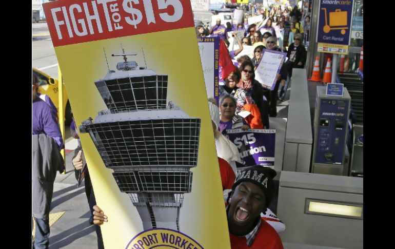 CHICAGO, ESTADOS UNIDOS (29/NOV/2016).- Docenas de personas fueron arrestadas el martes en distintas partes del país cuando participaban en manifestaciones para exigir que el salario mínimo nacional se fije en 15 dólares la hora.Las protestas estallaron en diversas ciudades, entre ellas Chicago, Detroit, Houston, Los Angeles, Minneapolis y Nueva York. Destacaba la participación de empleados de restaurantes de comida rápida, de empleadas domésticas y de niñeras. En varias ciudades los manifestantes bloquearon el tránsito en las calles.En Chicago, cientos de manifestantes se aglomeraron frente al Aeropuerto Internacional O'Hare portando carteles y gritando consignas. La policía acordonó un pasillo por el cual los usuarios del aeropuerto podían caminar. Se informó que unos 500 trabajadores del aeropuerto estaban en huelga.Se prevé que haya más protestas en distintas partes del país. Miles de personas dicen que abandonarán sus puestos de trabajo en McDonald's. Las manifestaciones son parte de una campaña que tiene como meta aumentar el salario mínimo.Unos 25 de entre 350 manifestantes en Nueva York fueron arrestados. Una de las descontentas, Flavia Cabral, de 55 años, dice que tiene dos empleos y apenas le alcanza el dinero."Ninguno de nosotros tiene ahorros, porque vivimos de sueldo en sueldo", dijo Cabral. "Tenemos que decidir: Si pagar el alquiler, la comida, o la escuela de mi hijo"La policía de Detroit dijo que arrestó a unos 40 manifestantes que interrumpieron el tránsito. Casi 40 inconformes fueron detenidos en Cambridge, Massachusetts.En la zona de San Francisco, un grupo de taxistas, empleados de comida rápida, empleados de aeropuertos y otros interrumpieron el tránsito en una intersección.El Employment Policies Institute, un grupo de tendencia conservadora, dice que un aumento del salario mínimo causaría la pérdida de empleos y el cierre de tiendas.