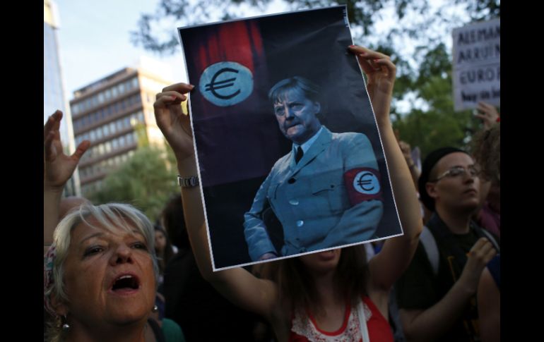 Internacional | Se congregaron en Madrid más de 300 manifestantes Protestan en España por visita de Angela Merkel Se congregaron en Madrid más de 300 manifestantes protestando enfrente a la sede del Parlamento europeocontra la visita de la canciller alemana Por: AFP 6 de septiembre de 2012 - 16:16 hs Manifestantes sotienen una imagen con una sátira de la canciller alemana, Angela Merkel. ARCHIVO / MADRID, ESPAÑA (06/SEP/2012).- Más de 300 manifestantes se congregaron el jueves en Madrid para protestar contra la visita a la capital española de la canciller alemana Angela Merkel, a la que consideran responsable de las fuertes medidas de rigor impuestas a España. "Una Europa alemana, no" y "Merkel go home" se podía leer en las pancartas que agitaban los manifestantes, algunos mostrando a una Angela Merkel con las mejillas pintadas con una cruz gamada. Entre silbidos, gritaron consignas surgidas del movimiento de los "indignados", en mayo de 2011 como "Vuestra crisis no la pagamos" y "Manos arriba, esto es un atraco". Convocados antes frente a la sede del Parlamento europeo, en el centro de Madrid, los manifestantes se dirigieron una hora y media después a la embajada alemana, protegida por policías. Más temprano, los mandatarios español Mariano Rajoy y alemana Angela Merkel se mostraron unidos ante la crisis de la zona euro, pero evitaron pronunciarse sobre las nuevas medidas de ayuda anunciadas por el BCE y de referirse a la opción de un rescate financiero para España. España y Alemania harán "todo lo necesario para resolver de forma definitiva la crisis del euro", dijo el presidente del gobierno español en ocasión de la visita de la canciller Merkel, quien dijo que "tenemos que restaurar la confianza en el euro en su conjunto". Mariana Ugarte, de 33 años, empleada de una ONG, dijo que "vengo por las condiciones que nos están imponiendo desde Europa. Son soluciones capitalistas a una crisis que han provocado los mercados" Paco Frontinan, de 58 años, en paro desde hace cuatro meses en el sector de telecomunicaciones, afirmó que "vengo a protestar por la situación que hay por la culpa de Alemania, forzándonos a una situación absurda de austeridad, que no tiene sentido en un país como España con un paro tan elevado". Se trataba de la tercera visita diplomática a Madrid en menos de dos semanas, después de la de los mandatarios europeos Herman Van Rompuy y François Hollande. Temas Europa España Manifestaciones en el mundo Angela Merkel Lee También Marchas CDMX: HOY, 17 de octubre, estas son las afectaciones viales Sin maíz no hay país Esto se sabe de la megamarcha de maestros en CDMX el 17 de octubre ¿Cómo se despliegan los cárteles mexicanos en Australia? Recibe las últimas noticias en tu e-mail Todo lo que necesitas saber para comenzar tu día Registrarse implica aceptar los Términos y Condiciones