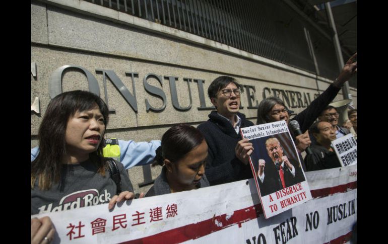 PEKÍN, CHINA (01/FEB/2017).- Un grupo de políticos, activistas y representantes de grupos religiosos de Hong Kong protestó hoy en las cercanías del Consulado de Estados Unidos en la ciudad por la reciente orden del presidente Donald Trump de vetar la entrada a su país a ciudadanos de siete naciones de mayoría musulmana.El célebre activista local Leung "Pelo Largo" Kwok-hung encabezó la protesta, organizada por la Liga de Socialdemócratas (la formación que él preside), la Diócesis Católica de Hong Kong y la asociación que engloba a los trabajadores inmigrantes de Hong Kong.Los manifestantes, apenas un centenar, entre ellos algunos musulmanes, portaron pancartas en las que podía leerse: "no al odio, no al miedo, no a la prohibición del Islam" y corearon consignas como "Abajo, abajo Donald Trump"."Millones de emigrantes hicieron a EU grande en el pasado, pero ahora Trump los ve como una amenaza a la seguridad, como gente ilegal, como animales que han de ser sacados por el territorio", condenó un manifiesto leído por una de las participantes en las protestas."Trump olvida que EU no sería nada sin los emigrantes, que ningún país puede crecer sin un entorno global, como hace Hong Kong", añadió esa portavoz.Una representante del consulado acudió a la puerta de la oficina diplomática para recibir a petición de los congregados un documento en el que exponían sus reivindicaciones, mientras la policía pidió al grupo que se dispersara, ya que no había solicitado permiso para manifestarse.Los manifestantes portaban fotografías de Trump en el que el nuevo presidente de EU era tachado de "racista, sexista, fascista, homófobo e islamófobo".Desde su llegada al poder, el 20 de enero, la presidencia de Trump ha estado rodeada de polémica y las protestas contra sus primeras decisiones tomadas en el Despacho Oval se han extendido tanto dentro como fuera de Estados Unidos.Hong Kong, que tiene una importante comunidad musulmana procedente de otras antiguas colonias británicas como Malasia o los países del subcontinente indio, también ha vivido tensiones entre locales e inmigrantes en los últimos años, aunque más bien centradas en la llegada a ese territorio de ciudadanos chinos.