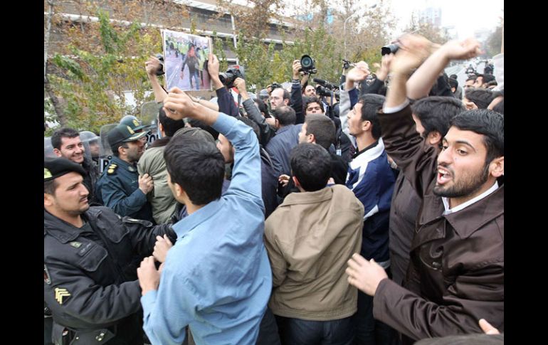 Internacional | Lanzan piedras y huevos contra la embajada británica de Teherán Protestan universitarios contra asesinato de científico Lanzan piedras y huevos contra la embajada británica de Teherán Por: NTX 13 de diciembre de 2010 - 04:34 hs Estudiantes iraníes se enfrentan a la Policía antidisturbios durante una manifestación. NTX / IRAN (13/DIC/2010).- Estudiantes iraníes se enfrentan a la Policía antidisturbios durante una manifestación frente a la embajada británica en Teherán. Cientos de jóvenes protestaron para condenar el asesinato del científico nuclear iraní, Majid Shahriari, que murió el 29 de noviembre en un coche bomba. Durante la protesta, los universitarios lanzaron piedras y huevos contra la embajada británica en Teherán y quemaron las banderas de ese país y de Estados Unidos, ante lo cual intervino la Policía iraní. Shahariari trabajaba en la Universidad Shahid Behesti y era miembro de la Sociedad Nuclear de Irán, falleció al estallar un artefacto colocado en su vehículo cuando circulaba por el Norte de Teherán junto a su esposa, quien resultó herida. Temas Asia Irán Manifestaciones en el mundo Lee También Jugadores de LaLiga se manifiestan contra el partido en Miami Protestan contra Trump en Estados Unidos "Israel seguirá violando los derechos del pueblo palestino"; advierte experto Represión de ICE en Chicago Recibe las últimas noticias en tu e-mail Todo lo que necesitas saber para comenzar tu día Registrarse implica aceptar los Términos y Condiciones