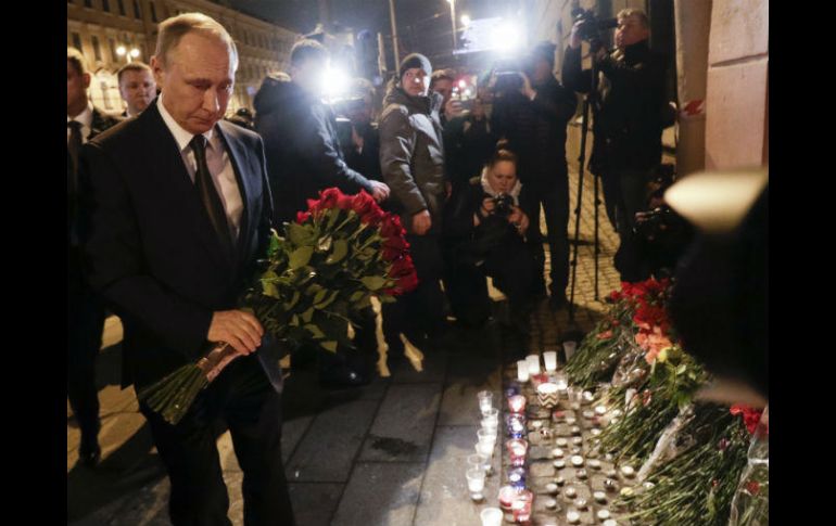 SAN PETERSBURGO, RUSIA (03/ABR/2017).- El presidente ruso, Vladimir Putin, acudió el lunes por la noche a depositar flores en el lugar del atentado que dejó al menos once muertos en el metro de San Petersburgo.Putin, que no hizo declaraciones, dejó un ramo de flores rojas delante de la entrada de la estación del Instituto Tecnológico, donde se detuvo el tren en el que se produjo una explosión este lunes. La zona había sido acordonada por las fuerzas de seguridad.