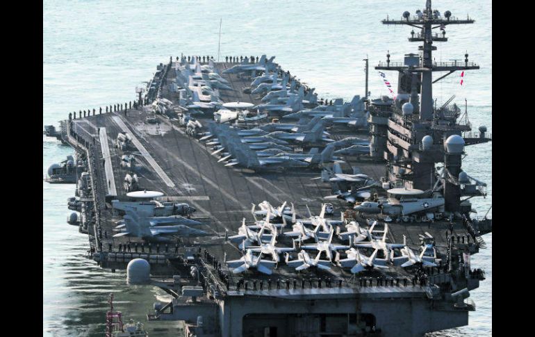 PYONGYANG, COREA DEL NORTE (24/ABR/2017).- Corea del Norte amenazó ayer a Estados Unidos con hundir de “un solo golpe” al portaviones USS Carl Vinson si se acerca a aguas del país asiático, en una acción que demostraría el poderío de las fuerzas armadas norcoreanas.“Nuestras fuerzas revolucionarias están preparadas para el combate con el objetivo de hundir el portaviones estadounidense con un solo ataque”, señaló en una columna de opinión el Rodong Sinmun, diario oficial del Partido del Trabajo de Corea del Norte.Comparó el portaaviones con una “bestia bruta” y destacó que un ataque en su contra sería un “ejemplo real para mostrar la fuerza y poderío del Ejército” norcoreano.Mientras las amenazas corren y la tensión se incrementa, ayer Japón y Estados Unidos iniciaron maniobras navales conjuntas en el Océano Pacífico, cerca del Archipiélago de Filipinas, antes de dirigirse a finales de esta semana a aguas cercanas a la Península de Corea, anunció el Ministerio nipón de Defensa.Seúl también estudia participar en las maniobras combinadas de la flota nipona y el citado buque de propulsión nuclear de la clase Nimitz (la mayor del mundo en términos militares) esta semana.Planean un freno para Corea del NorteLos jefes negociadores nucleares de Corea del Sur, Estados Unidos y Japón mantendrán una reunión trilateral mañana en Tokio para poner freno a Corea del Norte, que se prepara para llevar a cabo su sexta prueba nuclear.Se espera que en la reunión entre Kim Hong-kyun, representante especial para los asuntos de paz y seguridad de la Península coreana, y sus homólogos estadounidense y japonés, Joseph Yun y Kenji Kanasugi, respectivamente, se coordinen las respuestas para hacer frente a las crecientes amenazas nucleares y de misiles norcoreanas.La reunión tiene lugar tras las recientes visitas a la región del secretario de Estado, Rex Tillerson, y el vicepresidente, Mike Pence, las cuales se espera que proporcionen una imagen más clara sobre la forma en la que se determinará el enfoque conjunto trilateral hacia Corea del Norte bajo la Administración Donald Trump.Se unen contra NorcoreaAustralia y Nueva Zelanda criticaron ayer a Corea del Norte, un país al que el Gobierno australiano tachó de “grave amenaza” y al que el neozelandés acusó de tener “intenciones maléficas”.Corea del Norte debe “invertir en el bienestar de sus ciudadanos que sufren desde hace mucho tiempo y no en armas de destrucción masiva”, declaró la ministra australiana de Relaciones Exteriores, Julie Bishop, que horas antes calificó al país como una “grave amenaza”, provocando una reacción del Gobierno norcoreano.“Si Australia persiste en seguir los pasos de Estados Unidos para aislar y asfixiar a Corea del Norte, eso sería suicida”, declaró un portavoz del Ministerio norcoreano de Relaciones Exteriores. La ministra australiana “debe pensar dos veces en las consecuencias”.Por su parte, el ministro neozelandés de Defensa, Gerry Brownlee, acusó a Pyongyang de tener “intenciones maléficas”, en declaraciones a la televisión: “Corea del Norte envía misiles al mar de Japón y profiere múltiples amenazas escandalosas, incluso contra Australia”. Peligra presupuesto por muroLa administración de Trump reafirmó ayer que la financiación de su muro fronterizo con México es una condición para la aprobación del presupuesto estadounidense, corriendo el riesgo de generar una parálisis en el Gobierno si fracasan las negociaciones.El millonario republicano espera que el Congreso apruebe en los próximos días una parte de la financiación del muro, promesa emblemática de su campaña. Si no hay acuerdo, el Gobierno corre el riesgo de quedar paralizado el próximo sábado, cuando se cumplen los primeros 100 días de su gestión.No obstante, Trump no quita el dedo del renglón y ayer, en Twitter, declaró que “con el tiempo (...) México pagará de alguna forma por el muro fronterizo que tanto necesitamos”.POR CIERTO Detienen a estadounidenseUn ciudadano estadounidense fue detenido cuando intentaba abandonar Corea del Norte, convirtiéndose en el tercero en ser arrestado en el país, informó ayer la agencia surcoreana de noticias Yonhap. “Estamos al corriente de la información de que un ciudadano de Estados Unidos fue detenido en Corea del Norte”, dijo Washington un responsable del Departamento de Estado.