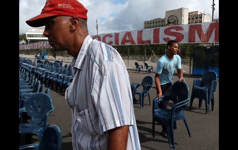 Internacional | Cientos de miles de cubanos, según la televisión estatal, participan en el desfile Raúl Castro preside acto central por el Primero de Mayo El Día Internacional del Trabajo está marcado este año en Cuba por el desarrollo de las reformas económicas emprendidas por el Gobierno de Raúl Castro Por: EFE 1 de mayo de 2012 - 07:38 hs Dos hombres alinean sillas en la Plaza de la Revolución de La Habana antes del desfile por el día internacional del trabajo. EFE / LA HABANA, CUBA (01/MAY/2012).- El jefe de Estado, Raúl Castro, preside hoy en la Plaza de la Revolución de La Habana el acto central por el Primero de Mayo, Día Internacional del Trabajo, donde se celebra un multitudinario desfile bajo el lema "Preservar y perfeccionar el socialismo". Vestido con guayabera blanca y pantalón oscuro, el presidente cubano presenció el desfile en la tribuna de autoridades instalada bajo el monumento al prócer cubano José Martí. La fiesta de los trabajadores se plantea en la isla como una jornada de "unidad" en torno a su revolución así como de "reafirmación y compromiso" con el cumplimiento del plan para "actualizar" el modelo socialista, dijo el secretario general de la Central de Trabajadores de Cuba (CTC, sindicato único), Salvador Valdés. "Somos los trabajadores y el movimiento sindical principales protagonistas en materializar la actualización del modelo económico cubano", señaló Valdés, quien fue el encargado de pronunciar las palabras centrales del acto. El líder sindical reconoció que esa "batalla económica" no está exenta de "obstáculos y dificultades" y llamó a elevar los niveles de producción y productividad laboral así como a potenciar el ahorro. Subrayó que la continuidad de la revolución cubana depende "de la capacidad para erradicar" errores y pidió enfrentar de forma "enérgica y sistemática" los delitos, la corrupción y la indisciplina social. Valdés trasladó también un mensaje de solidaridad de los cubanos con los "pueblos y trabajadores que en el mundo son víctimas de la crisis económica global". Cientos de miles de cubanos, según la televisión estatal, participan en el desfile central de La Habana por el Primero de Mayo que encabezan los trabajadores del sector de la sanidad. El Día Internacional del Trabajo está marcado este año en Cuba por el desarrollo de las reformas económicas emprendidas por el Gobierno de Raúl Castro, que incluyen, entre otras medidas, una drástica reducción de las plantillas estatales, donde se suprimirán medio millón de empleos públicos de forma progresiva hasta el año 2015. Temas América Latina Cuba Raúl Castro Día del Trabajo Lee También Día de Muertos 2025: ¿Dónde comprar papel picado en CDMX? ¿Cuáles son los elementos que se deben incluir en un altar de muertos? Cruz Azul vs América • Momentos Destacados • Jornada 13 • Apertura 2025 Festival del Día de Muertos en Guadalajara, lo que debes saber del evento Recibe las últimas noticias en tu e-mail Todo lo que necesitas saber para comenzar tu día Registrarse implica aceptar los Términos y Condiciones