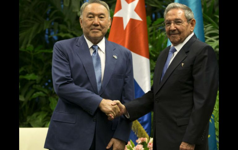 Internacional | Nursultán Nazarbáyev llegó este sábado a Cuba en su primera visita oficial a la isla Raúl Castro recibe al presidente de Kazajistán Nursultán Nazarbáyev llegó este sábado a Cuba en su primera visita oficial a la isla Por: EFE 2 de abril de 2016 - 20:58 hs En 2014, los dos países rubricaron un memorándum de entendimiento en educación, ciencia y deportes. AP / I. Francisco LA HABANA, CUBA (02/ABR/2016).- El presidente de Kazajistán, Nursultán Nazarbáyev, llegó a Cuba en su primera visita oficial a la isla caribeña, que incluye una reunión esta tarde con su homólogo cubano, Raúl Castro, y con la que espera reforzar los vínculos bilaterales en la política, la economía y la cultura. A su llegada al Aeropuerto Internacional José Martí de La Habana, Nazarbáyev fue recibido por el viceministro de Exteriores cubano, Rogelio Sierra, quien dio la bienvenida al mandatario y a la delegación kazaja, en la que viajó también el canciller de la nación euroasiática, Erlan Idrissov. Antes de su reunión con Raúl Castro -quien lo recibirá en el Palacio de la Revolución, sede del Gobierno cubano- el presidente de Kazajistán rendirá el tradicional homenaje al prócer independentista cubano José Martí, en la emblemática Plaza de la Revolución habanera. Como parte de la visita oficial, tendrá lugar en la sede de la Cancillería cubana un encuentro entre Idrissov y el ministro interino de Exteriores de la isla, Marcelino Medina. Además, se prevé la firma de un memorándum de entendimiento para la cooperación bilateral en las áreas de trabajo, empleo y protección social entre los dos países. De acuerdo con la biografía oficial publicada en el diario estatal cubano Granma, Nursultán Nazarbáyev (1940) participó activamente en la política desde la década de 1980 en la antigua República Socialista de Kazajistán, donde llegó a ser el Primer Secretario del Comité Central del Partido Comunista kazajo. Desde 1990 se desempeña como presidente de la nación euroasiática, cargo para el que ha sido reelegido en cuatro ocasiones. Nazarbáyev es comandante en jefe supremo de las Fuerzas Armadas kazajas, presidente de la Asamblea de los Pueblos de Kazajistán, presidente del partido "Nur Otan" y del Consejo de Seguridad de ese país. En 2014, los dos países rubricaron un memorándum de entendimiento para la colaboración en las esferas de educación, ciencia y deportes. Con el propósito de fortalecer el turismo y las relaciones económicas bilaterales, ambas naciones firmaron en diciembre de 2015 un acuerdo de exención de visados de corta duración. Temas América Latina Cuba Raúl Castro Política internacional Lee También México encadena cuatro partidos sin ganar, algo que no sucedía desde 2021 ¿Dónde ver Argentina vs Colombia: semifinal del Mundial Sub-20? Sociales: Subasta de Arte, obras a beneficio de Helen Keller Aprueban reforma a Ley de Amparo; oposición acusa retroactividad disfrazada Recibe las últimas noticias en tu e-mail Todo lo que necesitas saber para comenzar tu día Registrarse implica aceptar los Términos y Condiciones
