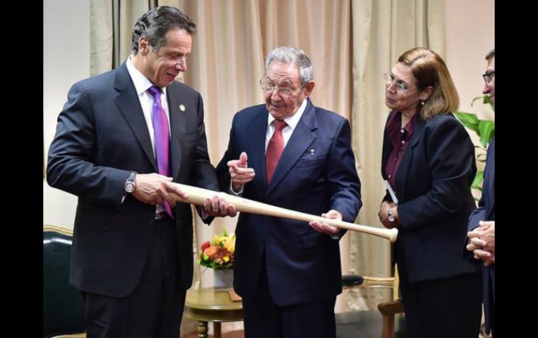Internacional | Recibió a Andrew Cuomo en la misión de Cuba para hablar de perspectivas comerciales Raúl Castro se reúne con gobernador de Nueva York Recibió a Andrew Cuomo en la misión de Cuba para hablar de perspectivas comerciales Por: AP 25 de septiembre de 2015 - 20:52 hs Cuomo regaló a Castro un bate de baseball de la Adirondack Bat Company, de Dolgeville, en Nueva York. TWITTER / @NYGovCuomo NUEVA YORK, ESTADOS UNIDOS (25/SEP/2015).- Fue tal vez un encuentro de negocios de rutina, de tantos que buscan los dignatarios visitantes aprovechando su presencia en Nueva York con motivo de la Asamblea General de las Naciones Unidas. Excepto que el dignatario que se entrevistó con el gobernador de Nueva York era Raúl Castro. En un signo de los tiempos cambiantes, Castro recibió al gobernador Andrew Cuomo en la misión de Cuba para hablar de las perspectivas comerciales entre ese estado y la isla, según informó la administración del gobernador. Cuomo regaló a Castro un bate de baseball de la Adirondack Bat Company, de Dolgeville, en Nueva York. Por su parte, Castro regaló al gobernador ron y cigarros cubanos. Cuba y Estados Unidos no tenían relaciones comerciales hasta hace poco, pero eso podría cambiar pronto a la luz de la reanudación de los lazos diplomáticos entre las dos naciones mediada por el papa Francisco. Cuomo visitó Cuba en abril. Castro hablará el lunes ante la Asamblea General y es posible que exhorte a Estados Unidos a levantar el embargo económico que rige sobre la isla desde hace más de medio siglo. El presidente Barack Obama, que impulsa el acercamiento con Cuba, no puede levantar el embargo ya que esa es facultad del Congreso, el cual está dominado por los republicanos que se oponen a dejar la sanción sin efecto. Temas Norte América Estados Unidos Cuba Raúl Castro Nueva York Relación Cuba-EU Recibe las últimas noticias en tu e-mail Todo lo que necesitas saber para comenzar tu día Registrarse implica aceptar los Términos y Condiciones