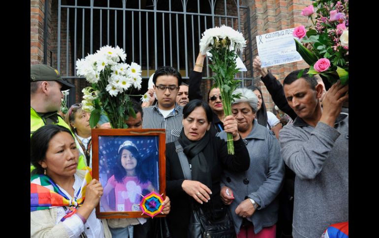 BOGOTÁ, COLOMBIA (07/DIC/2016).- La iglesia de Santa Teresita en Bogotá ha acogido esta mañana la primera misa de exequias por la pequeña Yuliana Andrea Samboní, la niña de siete años que fue secuestrada, violada y asesinada el pasado domingo en un apartamento de un barrio acomodado de Bogotá.Familiares, vecinos y amigos de la menor han acudido al templo, administrado por una servicial comunidad de la orden de los Carmelitas para despedirse de ella en una emotiva ceremonia donde no han faltado los cantos corales que tanto gustaban a la pequeña.Alejandra Enciso, artista de la Orquestra Filarmónica de Bogotá y profesora de Yuliana, aseguró a Efe que la niña era "atenta, juiciosa, tierna y alegre" y destacó su afición por los espectáculos corales.Asimismo, la profesora explicó que cuatro miembros del coro que acompañó las exequias de hoy eran profesores de la menor.Poco después de las diez de la mañana, la comitiva mortuoria salió a pie de la Funeraria Los Olivos del barrio Palermo, a escasos metros de la iglesia donde tuvo lugar la misa. El cortejo fúnebre estaba encabezado por un payaso de tez taciturna y llorosa, seguido por el coche que portaba la pequeña, escoltado por seis agentes del Gaula, el grupo antisecuestros de la Policía de Colombia, con uniforme de gala y por más de un centenar de allegados de la menor. A su paso por la calle 43, la comitiva fúnebre rompía la tranquilidad matinal del tradicional barrio bogotano de Teusaquillo con insistentes gritos que reclamaban "justicia para Yuliana" y pedían exaltados la muerte de Rafael Uribe Noguera, su presunto asesino.Ya en el templo -lleno hasta los topes y fastuosamente decorado con motivos navideños-, el sacerdote Ruben Darío Ramírez, que presidió la ceremonia, recibió el pequeño ataúd blanco de la niña y lo roció con agua bendita.El féretro de la menor fue ubicado frente al altar, donde también se exhibía un pequeño nacimiento navideño, aún sin la figura del niño Jesús. Ese papel lo interpretaba hoy de manera simbólica la pequeña Yuliana, cuya trágica muerte ha conmocionado Colombia.Las primeras hileras de bancos del templo fueron ocupadas por los familiares y amigos más cercanos de Yuliana, entre los que no estaba su madre, que fue hospitalizada tras conocer la noticia y está embarazada.La emotiva ceremonia, cuyos cánticos corales y oraciones conmovieron a los asistentes, acabó con un estremecedor aplauso que retumbó dentro las paredes del templo y que acompañó la salida del cuerpo de la pequeña del lugar.En el exterior, centenares de ciudadanos esperaban los restos mortales de Yuliana entre una gran espectación mediática, que acorraló el auto fúnebre hasta que este se perdió por entre el inmisericorde trafico bogotano en dirección al Comando Aéreo de Transporte Militar (Catam).Este aeródromo será el punto de partida del ultimo viaje de Yuliana, que será trasladada hoy a la recóndita aldea del departamento del Cauca (suroeste) en que nació para descansar para siempre.