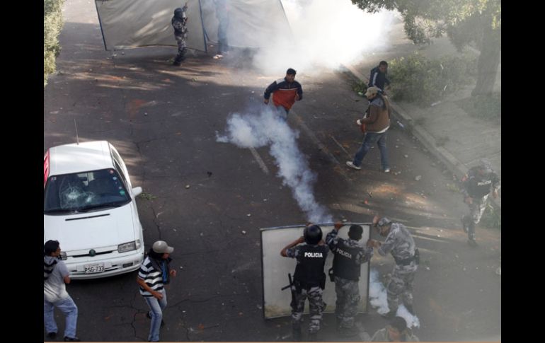 Internacional | El presidente Rafael Correa denuncia que su Gobierno enfrenta un intento de golpe de Estado Rebelión en Ecuador deja al menos 50 lesionados Debido a las protestas de policías y militares, la Cruz Roja reporta heridos por asfixia a causa del gas lacrimógeno, impactos de perdigones y de bombas lacrimógenas Por: AFP 30 de septiembre de 2010 - 19:44 hs Correa dice que no negociará con policías Rafael Correa, un líder carismático y temperamentalRespalda OEA al Gobierno de Ecuador por crisis QUITO, ECUADOR (30/SEP/2010).- Al menos 50 lesionados dejaba este jueves una rebelión de policías y militares de Ecuador en protesta por una ley que les reducirá sus beneficios económicos, indicó el portavoz de la Cruz Roja, Jorge Arteaga. "Hemos atendido en Quito a 50 personas que presentaron emergencias médicas por asfixia a causa del gas lacrimógeno, impactos de perdigones y de bombas lacrimógenas", dijo Arteaga. Agregó que también hay heridos en otras ciudades donde se reportaron protestas de los uniformados. A raíz de la sublevación, el presidente Rafael Correa denunció que su Gobierno enfrenta un intento de golpe de Estado de la oposición y sectores de las Fuerzas Armadas y la Policía cercanos al ex mandatario Lucio Gutiérrez, un coronel retirado del Ejército derrocado en abril de 2005. El Ejecutivo decretó el estado de excepción para que los militares asuman las labores de los policías en rebelión, que ocuparon un regimiento y la sede del Legislativo en Quito. Hieren en la cabeza al canciller de Ecuador Policías sublevados agredieron hoy al ministro ecuatoriano de Relaciones Exteriores, Ricardo Patiño, y le causaron una herida en la cabeza por lo que fue hospitalizado, según dijo una fuente gubernamental. Patiño presentaba manchas de sangre en su camisa al momento de ingresar en el hospital Metropolitano. De acuerdo a Agustín Armas, asesor de comunicación de Patiño, el titular de la diplomacia salió de la habitación del hospital de la Policía donde está el jefe de Estado, Rafael Correa, y cuando intentó regresar fue agredido. Armas dijo que del suceso le informó una persona que estuvo junto a Patiño, quien vio que "se le acercaron unos policías y le pegaron, le rompieron la cabeza". "Ya le rompen la cabeza, sale de ahí y va al hospital Metropolitano" donde recibe atención médica, señaló. Manifestantes agrupados en el hospital Metropolitano dijeron que fueron alertados por un funcionario de la posible llegada de militares, por lo que les pidieron abandonar el lugar. Con información de AFP y EFE Temas América Latina Ecuador Rafael Correa Recibe las últimas noticias en tu e-mail Todo lo que necesitas saber para comenzar tu día Registrarse implica aceptar los Términos y Condiciones