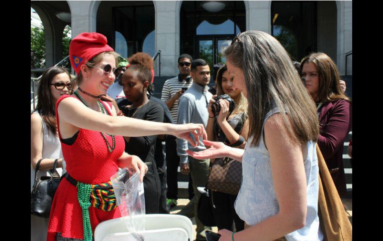WASHINGTON, ESTADOS UNIDOS (20/ABR/2017).- Decenas de activistas regalaron hoy cigarrillos de mariguana frente al Congreso de EU a funcionarios, periodistas e incluso a legisladores para pedir la legalización federal de esa droga, cuyo consumo es legal ya en ocho estados.Con ocasión del 20 de abril, que marca el día extraoficial del consumo de mariguana en Norteamérica, el grupo procannabis DCMJ distribuyó más de mil 200 cigarrillos de la hierba para pedir al Congreso de EU que prohíba la interferencia federal en los estados que la legalicen.Decenas de miembros, personal y becarios del Congreso, además de periodistas, estaban invitados a acudir con su acreditación a la mesa que el grupo colocó estratégicamente en el límite entre territorio federal y del Distrito de Columbia, correspondiente a Washington, para recoger los dos cigarrillos que les correspondían por persona.Desde 2014 y gracias a un referéndum popular, la capital del país legalizó el uso privado, la posesión de un máximo de 56.6 gramos, tener hasta seis plantas y regalar hasta 28,3 gramos de marihuana a los mayores de 21 años.Sin embargo, su venta, compra y consumo en espacios públicos aún está prohibida en la ciudad de Washington, mientras que en ocho estados está permitido su uso recreativo, en 18 su uso medicinal y en muchos otros estados el aceite de mariguana está disponible de forma médica.Por ello, esta "Joint Session", un juego de palabras de las sesiones conjuntas del congreso y el cigarrillo de droga (joint, en inglés), pidió al presidente del Congreso, Paul Ryan, que vuelva a autorizar la enmienda Rohrabacher-Farr, que expira el próximo 28 de abril y prohíbe al departamento de Justicia utilizar fondos para interferir con las leyes de mariguana de los estados."El 70% de los habitantes de Washington votaron (en 2014) por legalizar la mariguana, por eso pedimos que el Congreso retire esta legislación y nos deje hacer nuestras propias leyes responsables. La gente tendría que poder comprar cannabis aquí, pero no pueden", aseguró el cofundador de DCMJ, Adam Eidinger.Además, los activistas también pidieron una reforma bipartidista para legalizar y despenalizar la mariguana en todo el país.Eidinger apostó por presionar al Congreso ante la posición férrea del fiscal general, Jeff Sessions, contra la mariguana y el hecho de que el presidente, Donald Trump, se ha pronunciado solo a favor de su uso medicinal.Aunque los voluntarios procannabis lograron repartir cientos de cigarrillos de mariguana, la policía del Capitolio les confiscó varias decenas y detuvo a siete personas: seis mujeres que los distribuían y el propio Eidinger.Antes de su detención, Eidinger defendió su derecho a "regalar" mariguana en terreno del Distrito de Columbia, amparado por la legalización parcial en Washington, y no federal, donde la posesión y consumo de droga sigue siendo delito.En un comunicado, la policía del Capitolio aseguró que comenzaron a arrestar a varias personas después de ver que distribuían mariguana a los transeúntes en terreno federal.La próxima acción del grupo tendrá lugar el próximo lunes, tras un fin de semana en el que planean celebrarán el Festival Nacional de Cannabis, con una acción de protesta en la que fumarán cigarrillos de mariguana en las puertas del Capitolio para forzar su detención.