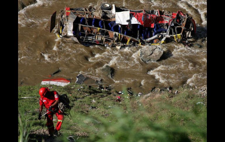 LIMA, PERÚ (17/MAY/2017).- Al menos trece personas murieron y más de 20 resultaron heridas este miércoles tras despistarse un bus en la región andina de Apurímac (sureste), informó la policía."Tenemos hasta el momento trece personas fallecidas y más de 20 heridos por la volcadura de un autobús que cayó cerca al río Chalhuanca", dijo el oficial Gregorio Quispitupa Huamán de la comisaría de distrito de Chalhuanca.El autobús transportaba a más de 38 pasajeros y se dirigía a la ciudad del Cusco, precisó.El accidente se produjo en la mañana del miércoles en el sector de Chancapuente, distrito de Chalhuanca, en Apurímac.Según la policía, doce personas murieron instantáneamente, mientras una perdió la vida de camino al hospital de Abancay.La policía y bomberos trabajaron en el lugar para rescatar los cuerpos de las víctimas.De acuerdo con cifras del ministerio del Interior, en 2016 se han producido 493 muertos en 3.876 accidentes de ruta, según la policía de carretera.