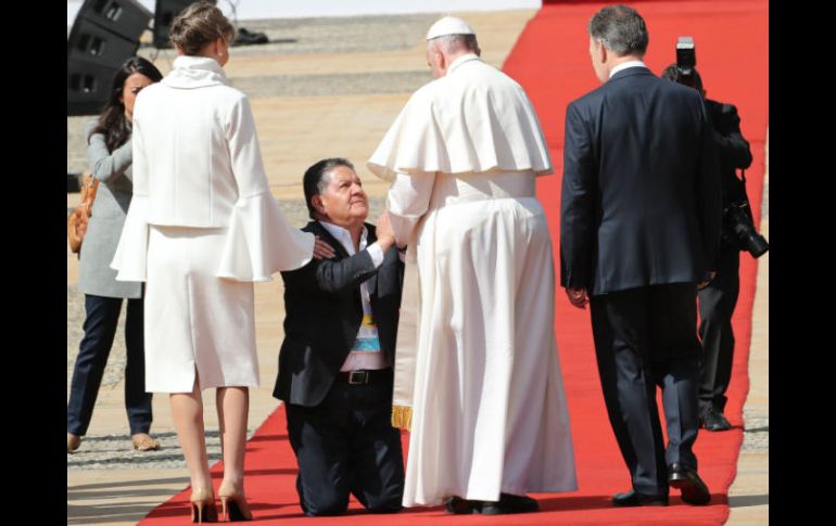 BOGOTÁ, COLOMBIA (07/SEP/2017).- Durante la visita del Papa Francisco en Bogotá, Colombia, un reportero decidió romper el protocolo para poder recibir la bendición del Pontífice.Este hecho ocurrió cuando el Papa caminaba sobre la alfombra roja junto al presidente colombiano, Juan Manuel Santos y la primera dama, María Clemencia Rodríguez de Santos, en la Plaza de Armas.En un video se ve al reportero romper todos los protocolos de seguridad para arrodillarse frente al Pontífice y pedirle que lo bendiga, inmediatamente los elementos de seguridad del Vaticano se acercan, pero no antes de que el Papa le toque la cabeza y lo bendijera.El comunicador se paró con ayuda de la primera dama y como logró su cometido, levantó los brazos en señal de victoria.Durante su visita al país, Francisco pronunció un emotivo mensaje a los jóvenes y fieles colombianos, además se reunió con los obispos para después realizar un recorrido por las calles de Bogotá donde recibió el cariño de miles de personas.Pese a la escolta de motocicletas con que contó el "papamóvil", en algunas calles estrechas las personas tuvieron la posibilidad de acercarse más de lo previsto al pontífice, quien en todo momento saludó a los fieles y les dio la bendición.El Papa estará en Colombia hasta el lunes 11 de septiembre.Con información de NTX