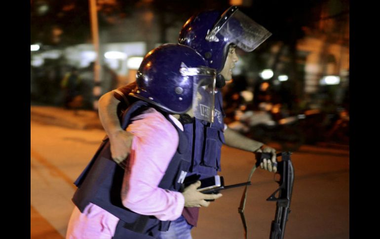 Internacional | El ejército lanzó una operación de rescate donde abatieron a seis terroristas Rescatan a 13 de restaurante de Bangladesh El ejército lanzó una operación de rescate donde abatieron a seis terroristas Por: AP 1 de julio de 2016 - 23:54 hs Por lo menos 35 personas, entre ellas 20 extranjeros, fueron retenidas en el restaurante por más de 10 horas. AP / DACA, BANGLADESH (02/JUL/2016).- Las fuerzas de seguridad de Bangladesh asaltaron el sábado por la mañana un restaurante donde milicianos fuertemente armados retuvieron a docenas de personas durante 10 horas, provocando explosiones y encontrando al menos seis cuerpos en charcos de sangre. Trece personas fueron rescatadas. Las fuerzas de seguridad despejaron el edificio principal del restaurante, indicó el oficial responsable de los comandos de Bangladesh que realizaron el asalto, el teniente coronel Tuhin Mohammad Masud. Al menos seis milicianos murieron y 13 rehenes fueron rescatados, señaló. Algunos milicianos fueron capturados. "Hemos abatido al menos a seis terroristas y el edificio principal está despejado, pero al operación continúa en marcha", señaló. Entre las personas rescatadas había un japonés, que estaba herido, y dos ciudadanos de Sri Lanka, añadió. El grupo Estado Islámico se atribuyó la responsabilidad del ataque contra el restaurante Holey Artisan Bakery, en la zona de Gulshan, en Daca, de acuerdo con SITE Intelligence Group, que monitorea actividad yihadí en internet. Por lo menos 35 personas, entre ellas 20 extranjeros, fueron retenidas en el restaurante, de acuerdo con un empleado de la cocina, Sumon Reza, quien fue una de más de 10 personas que lograron huir por el techo cuando llegaron los milicianos el viernes por la noche. Entre el sonido de disparos y explosiones, televisoras locales informaron del inicio de la operación de rescate a las 7:40 de la mañana. En la maniobra participó personal con armas automáticas y al menos siete vehículos blindados. Medios locales informaron de que un argentino y dos ciudadanos de Bangladesh habían sido rescatados el sábado de madrugada, pero en un primer momento no había detalles disponibles sobre su estado. Una agencia de noticias afiliada al grupo islamista dijo que 24 personas habían muerto y 40 resultaron heridas, entre ellas extranjeros. La cifra no pudo ser confirmada. La agencia Amaq publicó fotos que supuestamente muestran los cadáveres de rehenes. No se pudo confirmar de manera independiente la autenticidad de las fotos. El ataque supone una escalada en la creciente violencia extremista registrada los últimos tres años en el país, de mayoría musulmana pero tradicionalmente moderado. La mayoría de los ataques han sido asaltos de hombres armados con machetes contra personas concretas de minorías religiosas, extranjeros o activistas. Bangladesh no respondió en un primer momento a la reclamación del grupo extremista, pero en el pasado ha negado que el grupo armado tenga presencia en el país. El Departamento de Estado de Estados Unidos dijo estar al tanto de la reivindicación, pero que no podía confirmar su autenticidad. Temas Asia Terrorismo Bangladesh Estado Islámico Lee También Nominados de los MAMA Awards 2025 y cómo votar por tu favorito México hará ajustes a los aranceles a países asiáticos Gobierno palestino lamenta ataque "terrorista" a sinagoga en Reino Unido Tres muertos tras ataque a una sinagoga en Inglaterra Recibe las últimas noticias en tu e-mail Todo lo que necesitas saber para comenzar tu día Registrarse implica aceptar los Términos y Condiciones