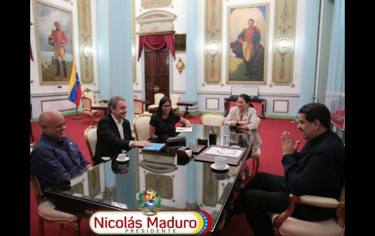 CARACAS, VENEZUELA (30/AGO/2017).- El ex jefe del Gobierno español José Luis Rodríguez Zapatero se reunió hoy en Caracas con el presidente venezolano, Nicolás Maduro, como parte del proceso de mediación que continúa liderando el político socialista entre el antichavismo y el Gobierno.El encuentro celebrado en el Palacio de Miraflores (sede de Gobierno), contó además con la presencia de la presidente de la Asamblea Nacional Constituyente, la oficialista Delcy Rodríguez, y su hermano Jorge Rodríguez, alcalde del municipio caraqueño Libertador, ambos representantes del Gobierno para las conversaciones con la oposición.A la reunión, de la que se supo por unas imágenes sin sonido difundidas a través de la televisión estatal VTV, acudió también la primera dama venezolana y constituyente, Cilia Flores.Aunque el canal gubernamental no ofreció detalles sobre los temas abordados en el encuentro, sí adelantó que se trataron asuntos relacionados al "diálogo" que intenta entablar el Gobierno con la oposición desde hace más de un año.Medios locales han asegurado que previo a este encuentro el ex jefe del Gobierno español se reunió también con los opositores, sin embargo la alianza Mesa de la Unidad Democrática (MUD) no ha confirmado esta información.El político español, uno de los mediadores de la Unión de Naciones Suramericanas (Unasur) para Venezuela, comenzó a visitar el país desde mediados de mayo de 2016 para promover un diálogo entre el Gobierno y la oposición agrupada dentro de la MUD.Pese al fracaso de esas reuniones por el supuesto incumplimiento de las partes de los acuerdos alcanzados en la mesa, Rodríguez Zapatero ha continuado visitando el país caribeño, especialmente en los momentos más álgidos de la crisis venezolana.Hasta la fecha, las conversaciones entre los opositores y el Gobierno de Maduro no se han podido retomar oficialmente, sin embargo el mandatario venezolano ha sugerido en varias ocasiones que su emisarios mantienen reuniones secretas con los opositores negociando escenarios políticos que les permitan la convivencia.