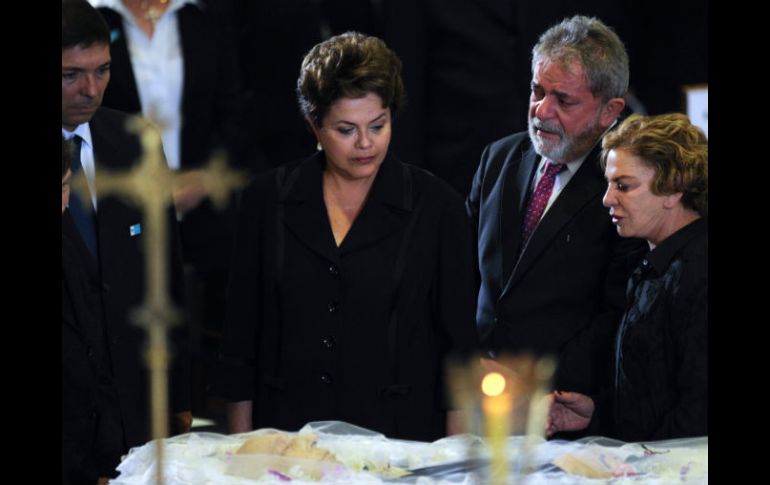 Internacional | El exmandatario lo definió como 'compañero y hermano' Rousseff y Lula encabezan funerales de Estado en homenaje a José Alencar El exvicepresidente recibió honores de Estado al que asistieron familiares y funcionarios, después el ataúd con los restos de Alencar serán transportados hoy por un avión de la Fuerza Aérea hasta Brasilia Por: EFE 30 de marzo de 2011 - 19:35 hs El ex presidente Lula da Silva y la jefa de Estado, Dilma Rousseff observan el cuerpo del exvicepresidente de ese país. EFE / BRASILIA, BRASIL (30/MAR/2011).- La jefa de Estado brasileña, Dilma Rousseff, y su antecesor Luiz Inácio Lula da Silva encabezaron hoy en el Palacio de Planalto el funeral del exvicepresidente José Alencar, fallecido este martes víctima de un agresivo cáncer. Rousseff y Lula se unieron a la ceremonia unas diez horas después de que se abrió la capilla ardiente en la sede del Gobierno debido a que se encontraban en Portugal, donde el exmandatario era objeto de diversos homenajes por su empeño en el combate a la miseria. La jefa de Estado y su antecesor en el cargo y mentor político llegaron juntos directamente desde el aeropuerto, se acercaron al féretro con los restos de Alencar sin poder ocultar su conmoción y asistieron a una misa de cuerpo presente oficiada por el obispo Dimas Lara Barbosa, secretario general del Episcopado. Como hizo al ser informado sobre la muerte de Alencar, quien le acompañó como vicepresidente durante toda su gestión gubernamental, entre enero del 2003 y enero de este año, Lula rompió en llanto ante el ataúd y le dio un cariñoso beso en la frente a quien definió como "compañero y hermano". Rousseff, de riguroso negro, no hizo declaraciones y se abrazó a la viuda de Alencar, Mariza Campos Gomes da Silva, durante la misa. El velatorio congregó en el Palacio de Planalto a los familiares de Alencar y a toda la clase política, que se volcó en pleno para rendir homenaje a un hombre que conmovió al país con la entereza que mostró en los últimos dos años frente a un agresivo cáncer abdominal que ya era irreversible. Además de ministros, parlamentarios, gobernadores, alcaldes y otros cientos de políticos que se hicieron presentes, ante el ataúd con los restos de Alencar desfilaron unas seis mil personas, en su gran mayoría empleados públicos y gente del pueblo que quiso participar en el homenaje. Algunas de esas personas más simples se emocionaron hasta romper en lágrimas, como ocurrió con la jubilada Enzimar Vieira dos Santos, quien se aferró al féretro para agradecerle a Alencar "el ejemplo de lucha contra el cáncer", una enfermedad que ella también padece. Alencar falleció, a los 79 años, en un hospital de Sao Paulo en el que durante más de una década fue tratado debido al cáncer y en el que, entre otras personalidades, ahora se atiende por ese mismo mal el presidente de Paraguay, Fernando Lugo. El ataúd con los restos de Alencar fue transportado hoy por un avión de la Fuerza Aérea hasta Brasilia, donde fue recibido con honores de Estado en un acto al que asistieron las autoridades de la Cámara de Diputados, el Senado y el Supremo Tribunal Federal. Los restos fueron trasladados al Palacio de Planalto en un camión de Bomberos escoltado por vehículos militares y al llegar a la sede del Gobierno fueron cargados en hombros por soldados de la guardia de honor de la Presidencia que los condujeron por una rampa hasta la capilla ardiente instalada en el Salón Noble, de la primera planta. El ataúd permanecerá en la capilla ardiente hasta mañana, cuando a primera hora será trasladado hacia Belo Horizonte, capital de su estado natal de Minas Gerais, donde los restos serán velados en el Palacio de la Libertad, sede del Gobierno regional. La última escala será en el cementerio de Contagem, ciudad vecina a Belo Horizonte, donde los restos de Alencar serán cremados, según el deseo que él mismo había manifestado en vida. En los 51 años de historia de Brasilia, esta ha sido la segunda vez que el Palacio de Planalto se abre para unos funerales de Estado y la primera en que se usa para despedir a un exvicepresidente. Hasta ahora, solamente Tancredo Neves, elegido presidente de Brasil en enero de 1985 pero que no llegó a asumir el cargo debido a una grave enfermedad que le causó la muerte, había sido velado en la sede del Gobierno. Temas América Latina Brasil Luiz Inácio Lula da Silva Dilma Rousseff Lee También Chivas y América empatan en partido amistoso 'Chicharito' marca su primer gol al América en partido amistoso "Chucky" Lozano reconoce que jugaría en Chivas o en América ¿Quién ganará el partido entre las América y Chivas? Esto dice la IA Recibe las últimas noticias en tu e-mail Todo lo que necesitas saber para comenzar tu día Registrarse implica aceptar los Términos y Condiciones