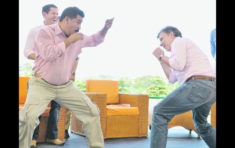 Internacional | El venezolano apoyó con traslados a Cuba Santos aprecia la contribución de Hugo Chávez al diálogo con las FARC El mandatario colombiano reitera voluntad de autoridades para concretar la tan ansiada paz en el país Por: EL INFORMADOR 10 de septiembre de 2012 - 00:40 hs Juan Manuel Santos prueba en broma algunos golpes de boxeo con el ex campeón mundial del peso gallo, Miguel ''Happy'' Lora. EFE / BOGOTÁ, COLOMBIA (10/SEP/2012).- El presidente colombiano Juan Manuel Santos valoró la contribución de su colega de Venezuela, Hugo Chávez, para abrir un diálogo de paz con las Fuerzas Armadas Revolucionarias de Colombia (FARC), que lleve al fin del conflicto armado interno. En entrevista que publicó ayer la revista Semana, el mandatario dijo que el Gobierno de Chávez “ha contribuido en lo que se le ha pedido, como lo han hecho los demás países”. Según medios locales, Venezuela fue clave para el transporte de los voceros de las FARC a Cuba, donde se desarrollaron los contactos exploratorios de paz y en la conveniencia de poner fin al conflicto interno en Colombia. “Como lo dije en mi discurso —en el que se anunció la apertura de negociaciones en octubre próximo en Noruega—, Venezuela ha estado permanentemente dispuesta a ayudar. Yo le agradezco al presidente Chávez esa disposición”. A la pregunta sobre si le convenía que Chávez gane su reelección en Venezuela el próximo mes por su apoyo al proceso, Santos respondió: “A Colombia lo que le conviene es tener las mejores relaciones con Venezuela”. Las FARC abrieron la posibilidad de que otros actores del conflicto tengan secuestrados a civiles y militares, cuya retención se atribuye a ese grupo armado. FRASE"La gente seria, que nos conoce, sabe que nosotros no decimos mentiras, que cuando nos comprometemos lo cumplimos, y cuando no podemos cumplir, lo decimos "Marcos Calarcá, delegado rebelde en los diálogos de paz. Temas América Latina FARC Colombia Relación Hugo Chávez - FARC Juan Manuel Santos Lee También Chivas y América empatan en partido amistoso Hay jugadores que no estuvieron a la altura: Javier Aguirre César Montes intenta justificar la goleada ante Colombia 'Chicharito' marca su primer gol al América en partido amistoso Recibe las últimas noticias en tu e-mail Todo lo que necesitas saber para comenzar tu día Registrarse implica aceptar los Términos y Condiciones