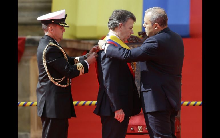 Internacional | Jura cumplir la Constitución de Colombia para su segundo mandato de cuatro años Santos asume segundo mandato presidencial en Colombia Jura cumplir la Constitución de Colombia para su segundo mandato de cuatro años Por: NTX 7 de agosto de 2014 - 15:13 hs BOGOTÁ, COLOMBIA (07/AGO/2014).- El presidente del Congreso de Colombia, José David Name, tomó hoy juramento al mandatario Juan Manuel Santos para un segundo mandato de cuatro años, con un llamado a construir el camino hacia la paz. " Colombia se apresta a inaugurar una nueva paz después de otra larga violencia, en virtud de las negociaciones que se adelantan en La Habana (Cuba), y que nosotros y todos nuestros compatriotas deseamos con fervor, fe y esperanza", dijo Name. En su discurso, en la histórica Plaza de Núñez, en el centro de Bogotá, el senador oficialista pidió el compromiso de todos, incluida la insurgencia, a la que llamó a cesar los ataques contra la población civil. Name, a quien correspondió imponer a Santos la banda presidencial, dijo que en "La Habana se acuerda la paz, en las urnas se elige la paz, el gobierno trabaja por la paz y desde el Congreso sacaremos adelante la legislatura de la paz". El presidente del Senado hizo alusión a las eventuales reformas sociales que sean pactadas en el marco de las negociaciones que mantiene el gobierno de Santos con las rebeldes Fuerzas Armadas Revolucionarias de Colombia (FARC) en Cuba. Desde que se iniciaron las conversaciones en 2012, se han alcanzado acuerdos parciales en temas de la agenda relacionados con el desarrollo rural, la participación política de desmovilizados y soluciones al problema de las drogas ilícitas. Tras afirmar que el nuevo mandato de Santos tiene muchos retos, Name indicó: "millones de compatriotas le dieron a usted, señor presidente, el aval a su escogencia y por eso hoy inicia su segunda marcha en búsqueda de esa paz esquiva". La ceremonia comenzó a las 15:00 horas locales (20:00 GMT), luego que el mandatario colombiano salió de la presidencial Casa de Nariño para dirigirse a la Plaza de Núñez, donde hizo su juramento ante el presidente del Senado. Más de 120 delegaciones internacionales y varios jefes de Estado asistieron al acto, entre ellos los presidentes de México, Enrique Peña Nieto; de Ecuador, Rafael Correa; de Perú, Ollanta Humala, y de Guatemala, Otto Pérez Molina. Así como los mandatarios de Paraguay, Horacio Cartes; de Panamá, Juan Carlos Varela, y de Honduras, Juan Orlando Hernández, además del ex monarca español Juan Carlos de Borbón y delegados de la Unión Europea (UE). Temas América Latina Colombia Juan Manuel Santos Recibe las últimas noticias en tu e-mail Todo lo que necesitas saber para comenzar tu día Registrarse implica aceptar los Términos y Condiciones