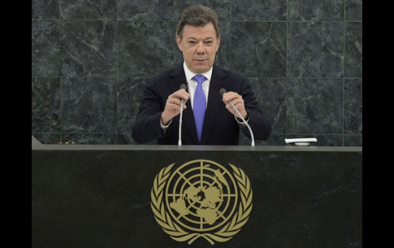 Internacional | El presidente colombiano participa en la Asamblea General de la ONU Santos insta a las FARC apurar acuerdos de paz El mandatario lamenta que tras once meses de conversaciones en La Habana, su gobierno ha logrado un solo acuerdo con la guerrilla Por: AFP 24 de septiembre de 2013 - 13:13 hs El gobierno de Santos mantiene en Cuba, desde noviembre de 2012, conversaciones de paz con las FARC. AP / NUEVA YORK, ESTADOS UNIDOS (24/SEP/2013).- El presidente de Colombia, Juan Manuel Santos, instó este martes a la guerrilla de las FARC a apurar las negociaciones para un acuerdo de paz, advirtiendo que la paciencia de los colombianos "no es infinita". Al pronunciar su discurso en la Asamblea General de la ONU, en Nueva York, Santos, lamentó que tras once meses de conversaciones en La Habana, su gobierno ha logrado un solo acuerdo con la guerrilla. "Sigo optimista pero la paciencia del pueblo colombiano no es infinita", dijo Santos ante la plenaria. "La guerrilla tendrá que decidir si opta por una paz honorable y duradera o si opta por la guerra", advirtió. El mandatario colombiano, que como ministro de defensa en el anterior gobierno de Álvaro Uribe lideró contundentes golpes contra la guerrilla, recordó que la guerra es la opción "más fácil" pero no la más responsable. "Hacer la guerra -y yo la sé hacer- es más fácil que buscar la paz. Sería más fácil pero no responsable", afirmó Santos. Sin embargo, el presidente reconoció que en las negociaciones, Colombia tiene ahora "la mejor oportunidad" para lograr la paz. Es "una oportunidad real, tal vez la última de poner fin al conflicto", afirmó al subrayar: "no podría morir tranquilo si no hago todo lo que esté a mi alcance" para lograrlo. El gobierno de Santos mantiene en Cuba, desde noviembre de 2012, conversaciones de paz con las Fuerzas Armadas Revolucionarias de Colombia (FARC, comunistas) para poner fin al conflicto armado que azota al país desde hace casi medio siglo. Santos se propuso firmar un acuerdo antes de fin de año, pero las conversaciones no han avanzado más allá del primer punto, un acuerdo sobre temas agrícolas. Temas América Latina Colombia ONU Juan Manuel Santos Lee También Analistas califican la derrota de México: "el resultado más desalentador del año" Zague aseguró que "no existe calidad" en el futbol mexicano Chivas y América empatan en partido amistoso Hay jugadores que no estuvieron a la altura: Javier Aguirre Recibe las últimas noticias en tu e-mail Todo lo que necesitas saber para comenzar tu día Registrarse implica aceptar los Términos y Condiciones