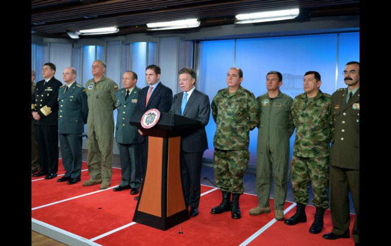 Internacional | Nuevos mandos militares en Colombia Santos nombra nueva cúpula de Fuerzas Armadas De manera sorpresiva, el presidente de Colombia, Juan Manuel Santos, realiza los nombramientos de los nuevos mandos de Fuerzas Armadas en dicho país Por: AFP 12 de agosto de 2013 - 21:48 hs Juan Manuel Santos, presidente de Colombia anunció los cambios desde la sede presidencial de ese país. ESPECIAL / BOGOTÁ, COLOMBIA (12/AGO/2013).- El presidente de Colombia, Juan Manuel Santos, designó este lunes sorpresivamente una nueva cúpula de las Fuerzas Armadas tras elogiar la tarea cumplida por los comandantes salientes, anunció en una declaración a la prensa. Santos, quien el pasado 7 de agosto inició el último de sus cuatro años de gobierno, hizo el anuncio en la casa de Nariño (sede presidencial) acompañado por el ministro de Defensa, Juan Carlos Pinzón, y los comandantes salientes y entrantes. Como comandante de las Fuerzas Militares nombró al mayor general del Ejército Leonardo Barrero, mientras que el nuevo comandante del Ejército será el mayor general Juan Pablo Rodríguez. El vicealmirante Hernando Wills es el nuevo comandante de la Armada Nacional (Marina de Guerra) y el mayor general del aire Guillermo León fue designado como nuevo comandante de la Fuerza Aérea. Al frente de la Policía, que en Colombia es una fuerza armada, fue nombrado el mayor general Rodolfo Palomino, en tanto que al frente del estado mayor conjunto quedó el mayor general del aire Hugo Acosta. La nueva cúpula "tiene la enorme responsabilidad de reemplazar al mando de las Fuerzas Armadas que más resultados ha cosechado en la historia reciente de Colombia en la lucha contra el terrorismo, narcotráfico, las bandas criminales y la delincuencia común", dijo Santos al anunciar los nuevos mandos. Colombia sufre desde hace casi medio siglo un conflicto armado interno en el que han participado guerrillas de izquierda, grupos paramilitares de derecha, organizaciones narcotraficantes y agentes de la fuerza pública, con unos 600 mil muertos y más de 3.7 millones de desplazados por la violencia. Actualmente el gobierno de Santos lleva a cabo en Cuba una negociación de paz con la guerrilla de las Fuerzas Armadas Revolucionarias de Colombia ( FARC), la principal del país y más antigua de América Latina, con unos 8 mil combatientes. Las tratativas, que se iniciaron en noviembre de 2012 y que Santos espera que finalicen a principios del 2014, se realizan sin que en Colombia las partes hubieran cesado la confrontación armada, por decisión del presidente. Tradicionalmente los cambios de comandantes de las distintas Fuerzas Armadas se producen a finales del año cuando el presidente define los ascensos de los nuevos generales. Temas América Latina Colombia Juan Manuel Santos Lee También Palabras de Trump, “groseras e ignorantes con Colombia”: Gustavo Petro Lugar de Sudamérica prohíbe Halloween por usar símbolos vinculados a la muerte Equipos que podrían quedar eliminados del Play In en la jornada doble de la Liga MX ¿Dónde ver EN VIVO el partido de J14 Mazatlán vs Santos? Recibe las últimas noticias en tu e-mail Todo lo que necesitas saber para comenzar tu día Registrarse implica aceptar los Términos y Condiciones
