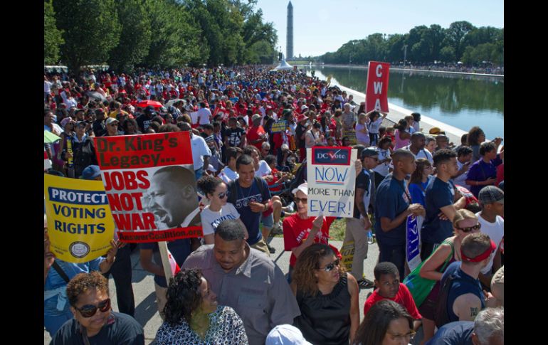 Internacional | Durante la marcha, en 1963, se pronunció el su discurso ''Tengo un sueño'' Se congregan por 50 aniversario de marcha de Martin Luther King La organización ha desplegado fuertes medidas de seguridad para los accesos al monumento a Lincoln ante las estimaciones de que más de 100 mil personas participarán Por: EFE 24 de agosto de 2013 - 10:53 hs WASHINGTON, ESTADOS UNIDOS (24/AGO/2013).- Miles de personas comenzaron a congregarse en las inmediaciones del monumento a Abraham Lincoln desde muy temprano en la mañana de hoy para connemorar el 50 aniversario de la famosa marcha sobre Washington en la que el reverendo Martin Luther King pronunció su discurso " Tengo un sueño". La organización ha desplegado fuertes medidas de seguridad para los accesos al monumento a Lincoln ante las estimaciones de que más de 100 mil personas participarán en los actos de hoy. Ciudadanos procedentes desde todos los rincones del país comenzaron a ocupar las inmediaciones del citado monumento rodearon el lago artificial que se encuentra a sus pies listos para una larga jornada de celebraciones y reivindicaciones de los derechos civiles en Estados Unidos. "No pude venir a la marcha de hace 50 años y lo lamento muchísimo, por eso vengo hoy aquí. Lo que ha pasado últimamente con la legislación del derecho al voto y sobre armas es demasiado", dijo Thomas Harris, procedente de Atlanta (Georgia). "Estamos retrocediendo. Lo que nos enseñó Martin Luther King es que tenemos que respetar a todas y cada una de las personas, y en ese sentido aún queda mucho por caminar", agregó. Con una mayoría abrumadora de gente de color, las calles de Washington eran desde muy temprano un goteo incesante de personas que tomaban dirección hacia el National Mall de Washington, donde hace medios siglo se congregaron para escuchar al doctor King. Muchos de los asistentes portaban carteles con la cara del joven Trayvon Martin, un adolescente negro de 17 años que fue asesinado el año pasado en Florida por un vigilante voluntario, George Zimmerman, quien recientemente fue encontrado no culpable de la muerte del joven. El 28 de agosto de 1963, el reverendo afroamericano Martin Luther King lideró la "Marcha por Trabajos y Libertad", que canalizó un malestar latente hasta la fecha de injusticias sociales, especialmente con relación a los negros, y contribuyó a cambiar la dinámica del país en los años inmediatos. El movimiento pacífico abanderado por King logró la aprobación de la Ley de los Derechos Civiles (1964) y la Ley del Derecho al Voto (1965), normativas diseñadas para prohibir la discriminación por razón de raza, género, religión y nacionalidad, marcando así un hito en la lucha por los derechos de las minorías en EU. Cincuenta años después, EU se encuentra bajo el segundo mandato del primer presidente negro de su historia, Barack Obama, quien aprovechará la efeméride para emular, desde el icónico monumento a Abraham Lincoln, al reverendo King, de quien en reiteradas ocasiones ha declarado que es una fuente de inspiración para él. Sin embargo, la participación de Obama en los actos conmemorativos del 50 aniversario deberá esperar hasta el miércoles -fecha exacta de la efeméride-, cuando el mandatario pronunciará un discurso junto a los expresidentes Bill Clinton y Jimmy Carter. Temas Norte América Estados Unidos Martin Luther King Recibe las últimas noticias en tu e-mail Todo lo que necesitas saber para comenzar tu día Registrarse implica aceptar los Términos y Condiciones