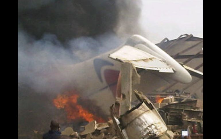 Internacional | En menos de un día han ocurrido dos accidentes de avión en Nigeria Se estrella en Nigeria avión comercial con 153 pasajeros Se trata del segundo accidente de un avión nigeriano en menos de 24 horas Por: EFE 3 de junio de 2012 - 11:42 hs La prensa local muestra imágenes, en sus ediciones digitales, del fuselaje del avión siniestrado, envuelto en llamas y humo. REUTERS / LAGOS, NIGERIA (03/JUN/2012).- Un avión comercial que transportaba 153 pasajeros se estrelló hoy en barrio residencial de Lagos durante la maniobra de aterrizaje, informó hoy la cadena local African Independent Television. El director de la Autoridad Nigeriana de Aviación Civil, Donald Demuren, citado por la fuente, confirmó el siniestro y agregó que creía que no había supervivientes. El avión, de la compañía nigeriana Dana Air, se disponía a aterrizar en Lagos, capital económica de Nigeria, procedente de Abuya, cuando se estrelló contra el barrio residencial de Iju, a las afueras de la ciudad. Residentes de la zona dijeron que oyeron un fuerte ruido y vieron humo, tras lo que varios vehículos de bomberos y ambulancias comenzaron a pasar a gran velocidad hacia el lugar del accidente. Asimismo, los vecinos dijeron que había varios edificios en llamas. Se trata del segundo accidente de un avión nigeriano en menos de 24 horas, después de que ayer una aeronave de carga de Allied Air saliera de la pista al intentar aterrizar en Accra y embistiera a un autobús, causando 10 muertos. Temas África Nigeria Accidentes aéreos Lee También Cierran dos tramos de avenida Juárez por caída de un poste y de ramas Dónde ver EN VIVO el Argentina vs Nigeria por el Mundial Sub-20 Bebé sobreviviente a explosión de Iztapalapa comenzará rehabilitación Helicóptero se desploma en autopista de Sacramento, esto se sabe del accidente Recibe las últimas noticias en tu e-mail Todo lo que necesitas saber para comenzar tu día Registrarse implica aceptar los Términos y Condiciones
