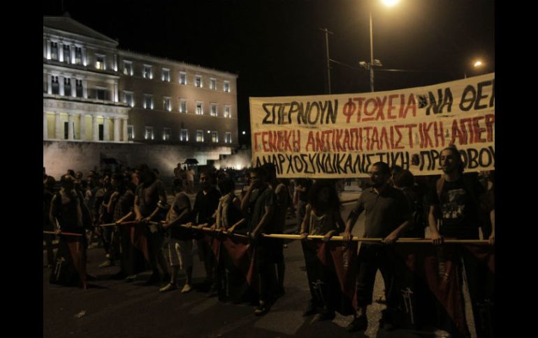 Internacional | Diversos sindicatos marchan hasta el parlamento griego para protestar contra éstas Se manifiestan en Atenas contra la aprobación de reformas Diversos sindicatos marchan hasta el parlamento griego para protestar por el aumento al IVA Por: EFE 22 de julio de 2015 - 17:07 hs ATENAS, GRECIA (22/JUL/2015).- Diversos sindicatos y colectivos se manifestaron en Atenas en contra de la aprobación del segundo paquete de reformas acordado entre el Gobierno griego y la eurozona, que se somete este miércoles a la votación del parlamento. Unos siete mil afiliados y simpatizantes del sindicato comunista PAME, según la policía, se concentraron en la plaza Omonia desde donde marcharon hasta la de Syntagma, sede del parlamento. A la de Atenas se unieron otras cerca de 40 manifestaciones que PAME organizó en ciudades de todo el país. Una vez en Syntagma se encontraron con la protesta organizada por la confederación de sindicatos del sector público (ADEDY), que también avanzó en manifestación hasta allí y que logró reunir a unas dos mil personas, de acuerdo con la policía que informó además de que se practicaron diez detenciones, aunque rehusó explicar los motivos. En la céntrica plaza se pudieron ver además simpatizantes de diferentes colectivos como los del movimiento izquierdista "Den plirono (Yo no pago)", el grupo de izquierda extraparlamentaria Antarsya o los miembros de la asociación helena de centros de idiomas. Estos últimos se unieron a la concentración para protestar contra el aumento del IVA al 23 % en su sector. Entre las diferentes reivindicaciones se podían leer muchas pancartas en contra de las reformas que previsiblemente se aprobarán este miércoles en el parlamento como "No al programa de rescate", "No al euro", "Sí a la salida de la UE". El paquete de reformas, el segundo que se somete a la votación del parlamento como requisito previo fijado por los acreedores para iniciar la negociación del tercer rescate, recoge la reforma del Código Civil y la adopción de la directiva europea sobre saneamiento de bancos. La primera incluye la eliminación de los testigos en los juicios civiles, uno de los puntos que ha generado más controversia y por el que las asociaciones de abogados y juristas han mostrado su rechazo. Por otro lado, la adopción de la directiva europea sobre saneamiento de bancos prevé los métodos de recapitalización de las entidades bancarias y la garantía de los depósitos de hasta 100 mil euros en caso de una quita. Temas Europa Manifestaciones en el mundo Grecia Crisis en Grecia Lee También Marchas CDMX: Estas son las afectaciones viales de hoy, 13 de octubre Sociales: El Informador inicia una nueva etapa con la moderna imprenta "Doña Stella" Lo peor es que Claudia también tiene sus dudas Sobrevivientes de tortura inician huelga de hambre Recibe las últimas noticias en tu e-mail Todo lo que necesitas saber para comenzar tu día Registrarse implica aceptar los Términos y Condiciones