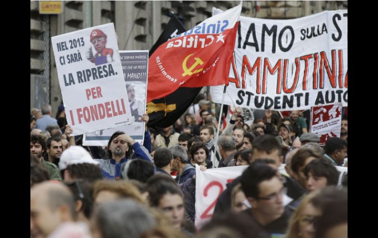 Internacional | La marcha transcurrió en calma, con fuertes medidas de seguridad para evitar incidentes Se manifiestan en Roma contra Gobierno de Monti ''Con la Europa que se rebela, echemos al Gobierno Monti'' se leía en la pancarta que abría la manifestación, en la que se corearon eslóganes contra una política que ''solo ha generado despidos y precariedad'' Por: EFE 27 de octubre de 2012 - 10:50 hs Organizadores esperaban afluencia de 30 mil personas, pero al ver la Plaza de San Juan abarrotada cifraron participantes en 150 mil. AP / ROMA, ITALIA (27/OCT/2012).- Decenas de miles de personas, cerca de 150 mil según los organizadores, se manifestaron en Roma contra el Gobierno del tecnócrata Mario Monti y su política de recortes y austeridad. El llamado "No Monti day", una iniciativa que ya se celebró en el pasado contra el anterior Gobierno de Silvio Berlusconi, fue convocado por sindicatos, asociaciones ciudadanas y movimientos de izquierdas. Los organizadores habían previsto la asistencia de unas 30 mil personas y anunciaron que llegarían más de 300 autobuses a la capital italiana, pero al ver la Plaza de San Juan abarrotada cifraron los participantes en 150 mil. "Con la Europa que se rebela, echemos al Gobierno Monti" se leía en la pancarta que abría la manifestación, en la que se corearon eslóganes contra una política que "solo ha generado despidos y precariedad". La marcha transcurrió en calma, entre fuertes medidas de seguridad para evitar incidentes como los que se produjeron el año pasado, cuando se registraron graves enfrentamientos con la policía. Solo algunos grupos de encapuchados lanzaron huevos y petardos contra las oficinas de algunos bancos. Entre los participantes en la protesta había numerosas asociaciones de estudiantes, protagonistas en las últimas semanas de varias manifestaciones contra los recortes en educación que introdujo el Gobierno de Berlusconi y que han sido mantenidos y ampliados por el Ejecutivo de Monti. Los organizadores convocaron la marcha en contra de "Monti y su política económica, que produce precariedad, despidos, paro y pobreza". "No a las contrarreformas liberales, ni de hoy ni mañana. No a la Europa de los pactos de estabilidad, del pacto fiscal, de la austeridad y del rigor, que devastan desde hace años Grecia y ahora Italia", según los organizadores. Temas Europa Manifestaciones en el mundo Italia Mario Monti Lee También Marchas CDMX: HOY, 17 de octubre, estas son las afectaciones viales Sin maíz no hay país Esto se sabe de la megamarcha de maestros en CDMX el 17 de octubre ¿Cómo se despliegan los cárteles mexicanos en Australia? Recibe las últimas noticias en tu e-mail Todo lo que necesitas saber para comenzar tu día Registrarse implica aceptar los Términos y Condiciones