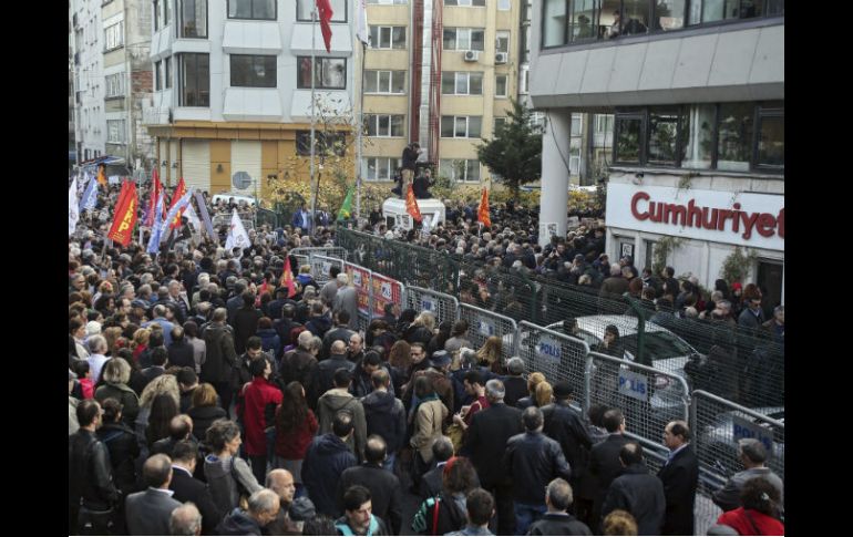 Internacional | Los policías dispersan a los manifestantes con gas lacrimógeno en Ankara Se manifiestan en Turquía por el encarcelamiento de dos periodistas Can Dündar y Erdem Gül se encuentran encarcelados bajo los cargos de espionaje y revelación de secretos de Estado Por: EFE 27 de noviembre de 2015 - 09:23 hs ANKARA, TURQUÍA (27/NOV/2015).- La policía turca utilizó gases lacrimógenos para dispersar una manifestación en Ankara a favor de la libertad de prensa y contra el encarcelamiento de dos periodistas críticos. Los agentes usaron espray de gas irritante contra los centenares de personas que se congregaron en el centro de la capital turca y marcharon luego hacia las oficinas del diario opositor "Cumhuriyet", al que pertenecen los dos informadores encarcelados. Algunas personas, entre ellas diputados del partido socialdemócrata CHP, el mayor de la oposición, tuvieron que ser hospitalizadas durante algún tiempo. Tanto el CHP como el partido izquierdista HDP han condenado con firmeza el envío a prisión preventiva de Can Dündar y Erdem Gül, periodistas acusados de espionaje y revelación de secretos de Estado. Dündar, redactor jefe del "Cumhuriyet", uno de los rotativos más antiguos y prestigiosos del país, publicó en mayo pasado documentos gráficos que demostraban, a su juicio, el envío de armas de Turquía a Siria bajo vigilancia de agentes de los servicios secretos turcos. La embajada estadounidense en Ankara y la Organización para la Seguridad y la Cooperación en Europa (OSCE) protestaron contra la prisión preventiva de Dündar y Gül y expresaron su preocupación por la situación de la libertad de prensa en Turquía. Además de Ankara, Estambul, Esmirna y otras ciudades de Turquía tuvieron manifestaciones similares, mientras que la Plataforma de Libertad para Periodistas ha convocado una marcha para este domingo. Temas Medio Oriente Turquía Manifestaciones en el mundo Libertad de Expresión Agresiones a periodistas Lee También Marchas HOY CDMX: afectaciones viales, de este 20 de octubre Van más de mil personas multadas por tirar basura Refuerzan plan para ahorrar energía con paneles solares Jugadores de LaLiga se manifiestan contra el partido en Miami Recibe las últimas noticias en tu e-mail Todo lo que necesitas saber para comenzar tu día Registrarse implica aceptar los Términos y Condiciones