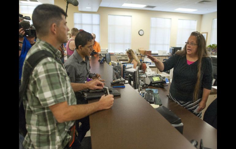 Internacional | La mujer sostiene que su fe cristiana debería eximirla de emitir estas licencias Secretaria en EU, a prisión por no emitir licencias matrimoniales gay La mujer se niega a emitir las licencias a pesar que la Corte Suprema legalizó ese tipo de uniones Por: AP 3 de septiembre de 2015 - 11:51 hs ASHLAND, ESTADOS UNIDOS (03/SEP/2015).- Un juez federal ordenó encarcelar a la secretaria de un condado en Kentucky que se negó a emitir licencias matrimoniales a parejas gay. El juez David Bunning dijo a la secretaria del condado de Rowan, Kim Davis, que seguirá en la cárcel hasta que cumpla su orden de emitir las licencias. Davis dijo "gracias" antes de salir del juzgado escoltada por un alguacil federal. No estaba esposada. Davis se niega a emitir las licencias a pesar de que la Corte Suprema legalizó el matrimonio gay. Sostiene que su fe cristiana debería eximirla de emitir las licencias. Temas Norte América Estados Unidos Matrimonio homosexual Recibe las últimas noticias en tu e-mail Todo lo que necesitas saber para comenzar tu día Registrarse implica aceptar los Términos y Condiciones
