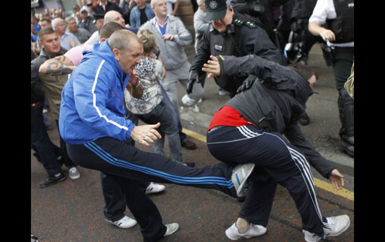 Internacional | El altercado se registró cuando protestantes marcharon frente a una iglesia católica Siete policías heridos en Belfast durante una marcha protestante Unos 17 mil miembros de la organización protestante The Royal Black Inistitution han llevado a cabo marchas en seis localizaciones diferentes de Irlanda del Norte Por: EFE 25 de agosto de 2012 - 09:55 hs El enfentamiento se dio frente a la Iglesia de St. Patrick. AP / LONDRES, GRAN BRETAÑA (25/AGO/2012).- Siete policías resultaron hoy heridos en Belfast (Irlanda del Norte) a causa de los disturbios ocasionados durante una marcha protestante a su paso frente a una iglesia católica. Los disturbios comenzaron cuando la banda lealista Young Conway Volunteers desafió la prohibición de las autoridades y marchó delante de la Iglesia de St. Patrick en la calle Donegal de la capital norirlandesa. Los agentes, algunos de los cuales llevaban equipamiento antidisturbios, intervinieron para separar a un grupo de manifestantes y fue en se momento cuando empezaron a recibir botellazos y pedradas. Según fuentes de la Policía de la región, ninguno de los agentes fue herido de gravedad, aunque uno de ellos tuvo que ser trasladado a un hospital con heridas en la cabeza. Unos 17 mil miembros de la organización protestante The Royal Black Inistitution han llevado a cabo marchas en seis localizaciones diferentes de Irlanda del Norte para conmemorar el centenario de la firma del Convenio unionista del Ulster. En Belfast, dos mil 300 personas se unieron a la marcha acompañados de 33 bandas de música. Temas Europa Manifestaciones en el mundo Gran Bretaña Recibe las últimas noticias en tu e-mail Todo lo que necesitas saber para comenzar tu día Registrarse implica aceptar los Términos y Condiciones