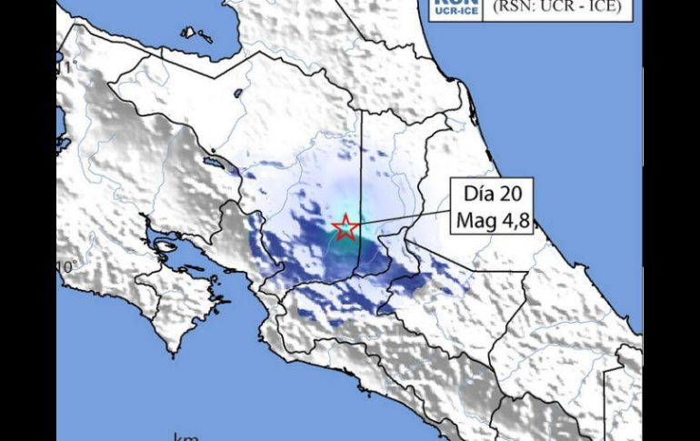 SAN JOSÉ, COSTA RICA (19/AGO/2017).- Un sismo de magnitud 4.8 en la escala abierta de Richter se produjo hoy en el centro de Costa Rica sin que se reporten daños ni heridos, informó la Red Sismológica Nacional (RSN).El temblor ocurrió a las 15:38 hora local (21:38 GMT) con epicentro 4 kilómetros al este de la localidad de Santa Teresita de Turrialba, provincia de Cartago (centro), indica el informe de la RSN.La profundidad del sismo fue de 12 kilómetros y su origen un fallo local superficial en la corteza de la placa terrestre Caribe.El movimiento fue sentido en todo el centro del país, principalmente en la provincia de Cartago y con menor fuerza en la capital San José y en algunos sitios de la provincia de Limón (este).