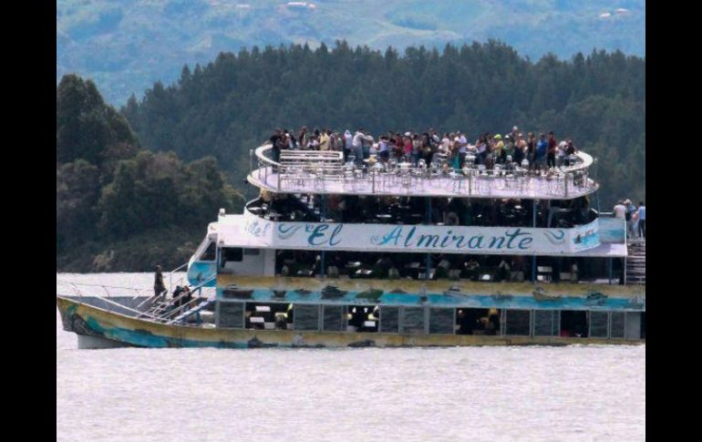 GUATAPÉ, COLOMBIA (25/JUN/2017).- Al menos nueve muertos y 28 desaparecidos dejó el naufragio este domingo de una embarcación turística que trasladaba a más de 150 personas en la represa El Peñol-Guatapé, en el noroeste de Colombia, informaron fuentes oficiales."Al momento tenemos ya, oficialmente, nueve personas que fueron encontradas muertas" y hay "más o menos unas 28 personas reportadas como desaparecidas", dijo a periodistas Margarita Moncada, directora del Departamento Administrativo del Sistema de Prevención, Atención y Recuperación de Desastres (Dapard) de la gobernación de Antioquia, cuya capital es Medellín, a unos 80 km del turístico embalse.Previamente el director de la Policía, general Jorge Hernando Nieto, informó de tres muertos y 30 desaparecidos.En tanto, otras "24 personas atendidas en hospital" fueron reportadas por la gobernación en su cuenta de Twitter.La embarcación "El Almirante", de cuatro cubiertas, transportaba a más de 150 personas cuando naufragó hacia las 14:00 horas locales cerca del puerto de la zona, indicaron las autoridades."Empezamos a sentir como si el barco se fuera a voltear", narró una mujer sobreviviente del hundimiento a los medios locales, asegurando que los pasajeros no tenían chaleco salvavidas y que en el bote había "muchos niños". Los dos primeros niveles, que se hundieron rápido, "estaban demasiado poblados", advirtió.Moncada explicó que 99 personas "salieron bien" del hundimiento tras ser rescatadas inmediatamente más otras 40 que "salieron por sus propios medios".La represa de El Peñol-Guatapé es uno de los principales sitios turísticos del departamento y este fin de semana unido al lunes que es feriado, muchos turistas acudieron al lugar para pescar y hacer jetsky, entre otras actividades."Frente a emergencia en Guatapé, @FuerzaAereaCol y organismos de socorro atienden situación. Estamos prestos a brindar asistencia requerida", escribió por su parte el presidente Juan Manuel Santos en su cuenta en Twitter. Difícil acceso a la zona Según el capitán Luis Bernardo Morales, comandante de los Bomberos de Envigado, "el hundimiento fue supremamente rápido, ocurrió en unos pocos minutos (...) y las embarcaciones que están en la zona hacen el primer auxilio".El responsable señaló que aún se desconocen las causas del naufragio. "Lo que hemos visto en los videos es que el bote estaba muy cerca del puerto (...) y no sabemos si fue por una falla mecánica, un tema de sobre cupo, o por algún tema de corrientes pudo haberse presentado el hundimiento", dijo a Blu Radio.Las rutas de acceso a la zona están saturadas por el fuerte tráfico en la vía Medellín-Bogotá y los rescatistas han "tenido algunas dificultades para llegar al sitio", relató Morales."La llegada a la zona es un poco compleja y los grupos de rescate y de socorristas se han ido sumando", dijo a Blu Radio el alcalde de Medellín, Federico Gutiérrez, quien anunció el envío de un equipo de socorro liderado por un capitán de bomberos y cinco buzos.La Fuerza Aérea reportó el envío de un helicóptero UH-60 Ángel para apoyar la emergencia. Además, dos helicópteros de la Séptima División del Ejército, que opera en Antioquia, también acuden al lugar, indicó la autoridad en un mensaje a periodistas.En tanto, la Dirección de Bomberos de Colombia anunció el desplazamiento de uniformados de los municipios de Rionegro, Envigado, Marinilla, Guarne, El Peñol y Medellín.En un video que comenzó a circular en redes sociales se observa el hundimiento de la nave y docenas de embarcaciones acercándose al lugar para rescatar a sus ocupantes.Las personas rescatadas eran trasladadas a los hospitales de Guatapé y de Rionegro.Los turistas, tanto locales como extranjeros, asisten a esta represa, propiedad de las Empresas Públicas de Medellín (EPM), para hacer recorridos de una o dos horas por sus aguas en embarcaciones de hasta cuatro pisos.