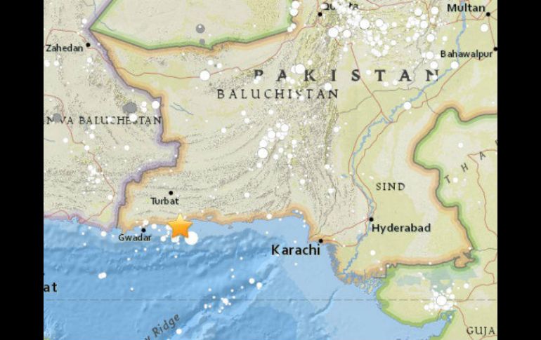 WASHINGTON, ESTADOS UNIDOS (07/FEB/2017).- Un terremoto de magnitud 6,3 en la escala de Richter sacudió hoy Pakistán, informó el Centro Geológico de Estados Unidos (USGS).Por el momento, no ha habido informes de que el sismo haya causado víctimas o daños materiales.El temblor ocurrió a las 22.03 GMT, su hipocentro se localizó a 10 kilómetros de profundidad y su epicentro a 23 kilómetros de la ciudad costera de Pasni, añadió el USGS, sin aportar más detalles.